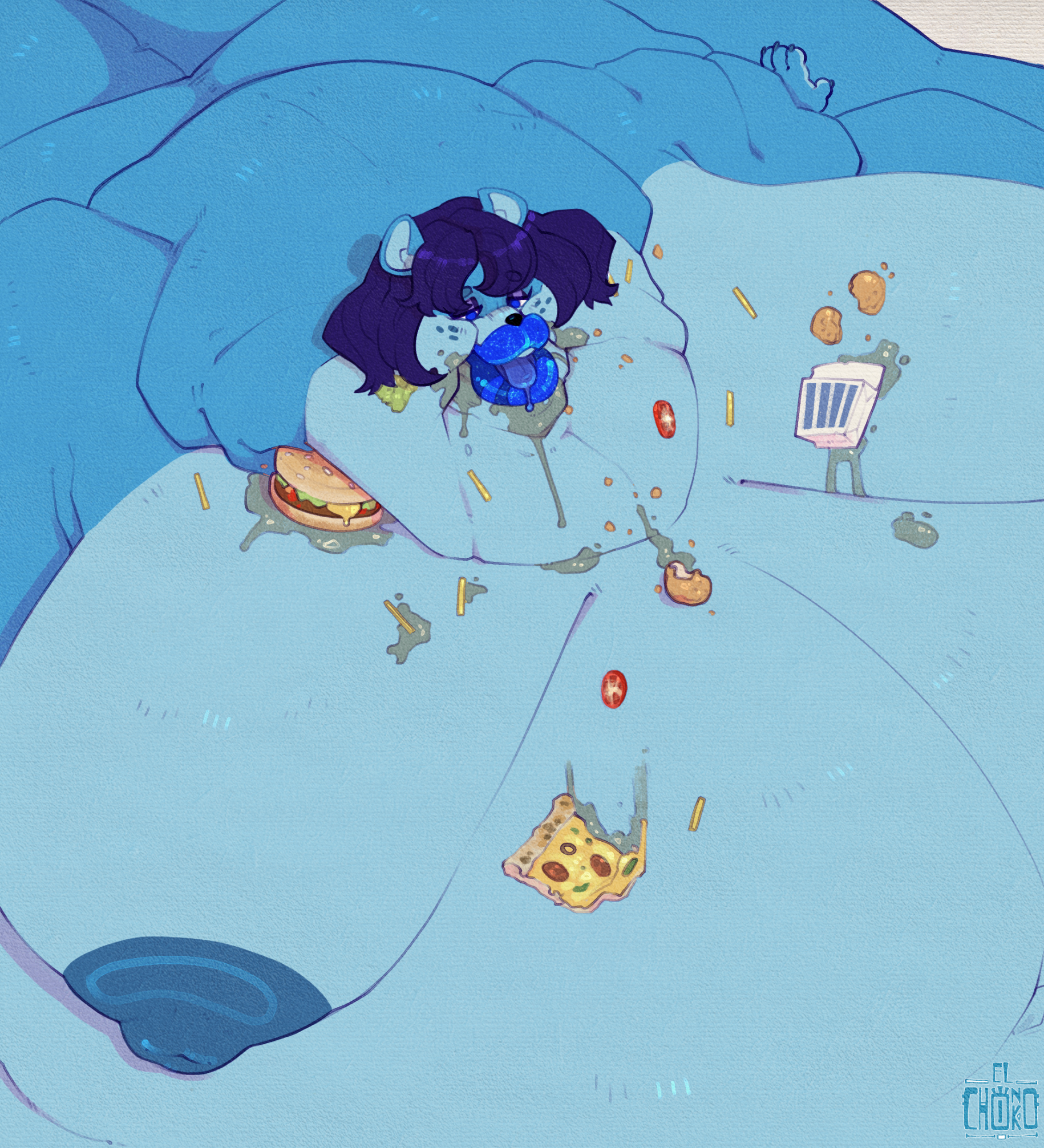 Kinks: Weight gain, Burps, Messy eating, Fat sex, Belly button fucking, Smothering.