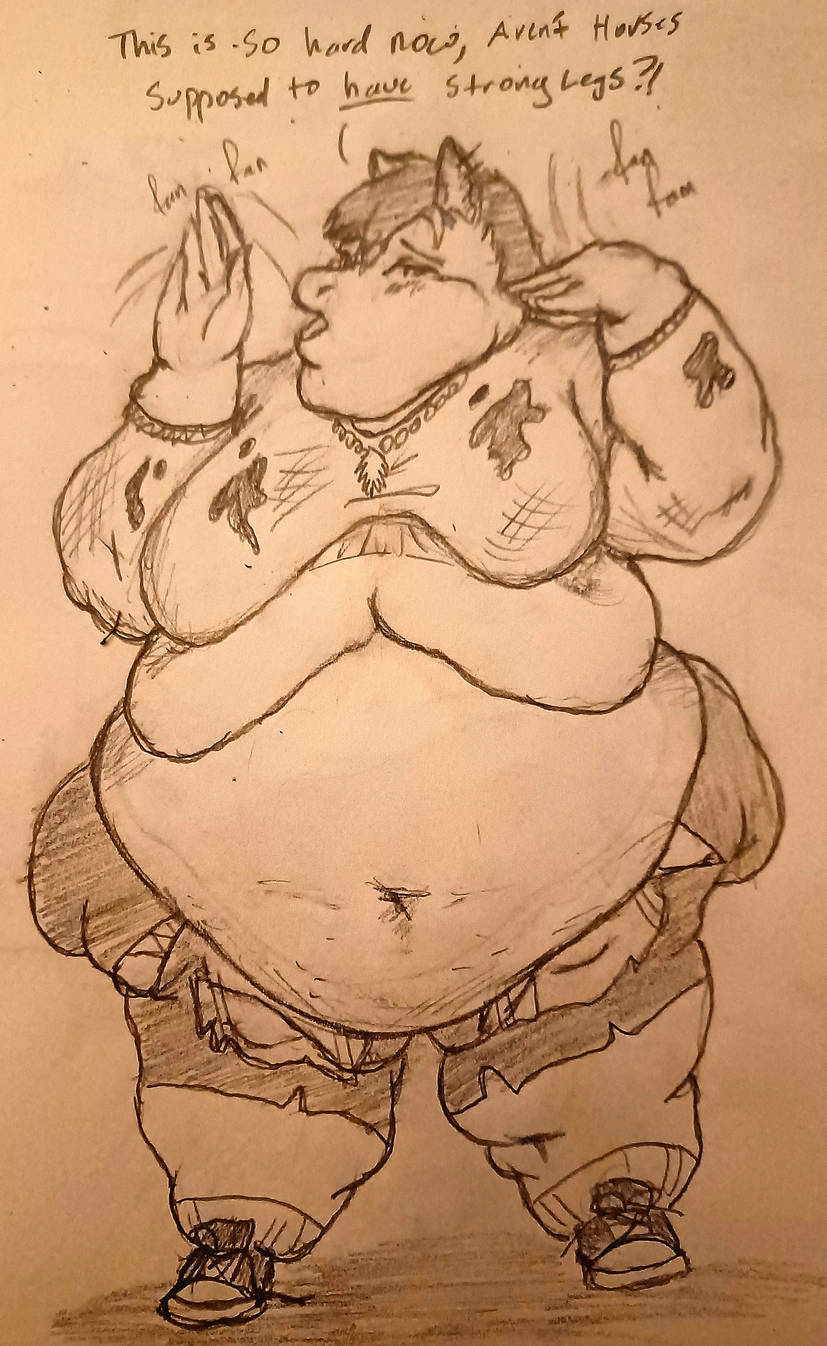 Make his gut and ass much much bigger Maybe make it so you can see the chocolate filling his gut