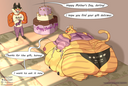 I wanna do some mutual weight gain involving Kris and Susie from deltarune fattening each other up. They'll both start off kinda chubby, Susie being a little bigger than Kris. After classes, they decide to hang out at Kris's place while Toriel is out, helping themselves to whatever food's around while they blimp up into gluttonous lardasses. Instead of feeling ashamed or disgusted, they view it as something hot, feeding each other, exploring their fat bodies and acting more like pigs as they continue to glut themselves.