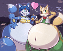 Repost from BlueSky and the object thread on BBWAlt. Had this idea for a concept of plushie pregnancy, and decided to use this plush of Forneus from Cult of the Lamb cuz it’s so adorable and hot. Added Guile from Street Fighter in there for laughs. Probably the first Forneus preg art and plush art online.