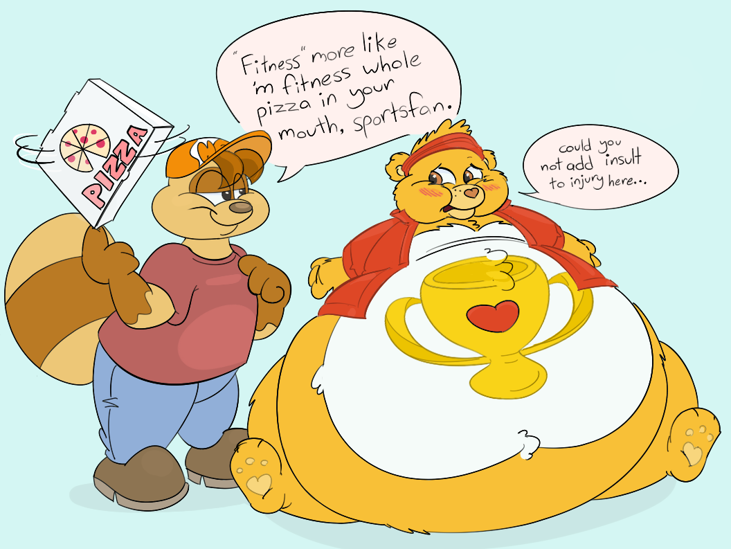 Kouka and Bibi. I only see the furry inflation one but these two need more fatfur art