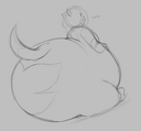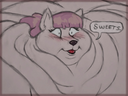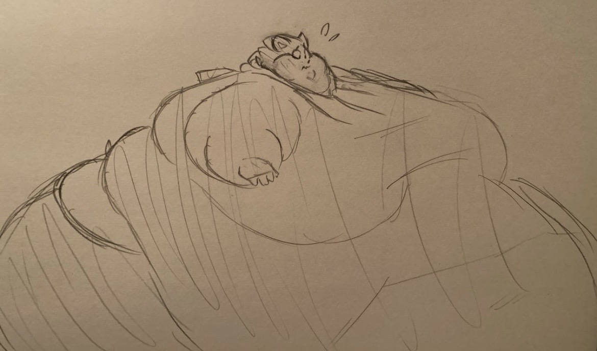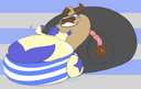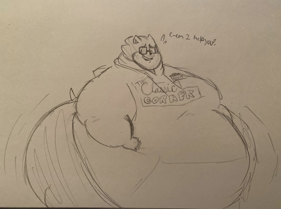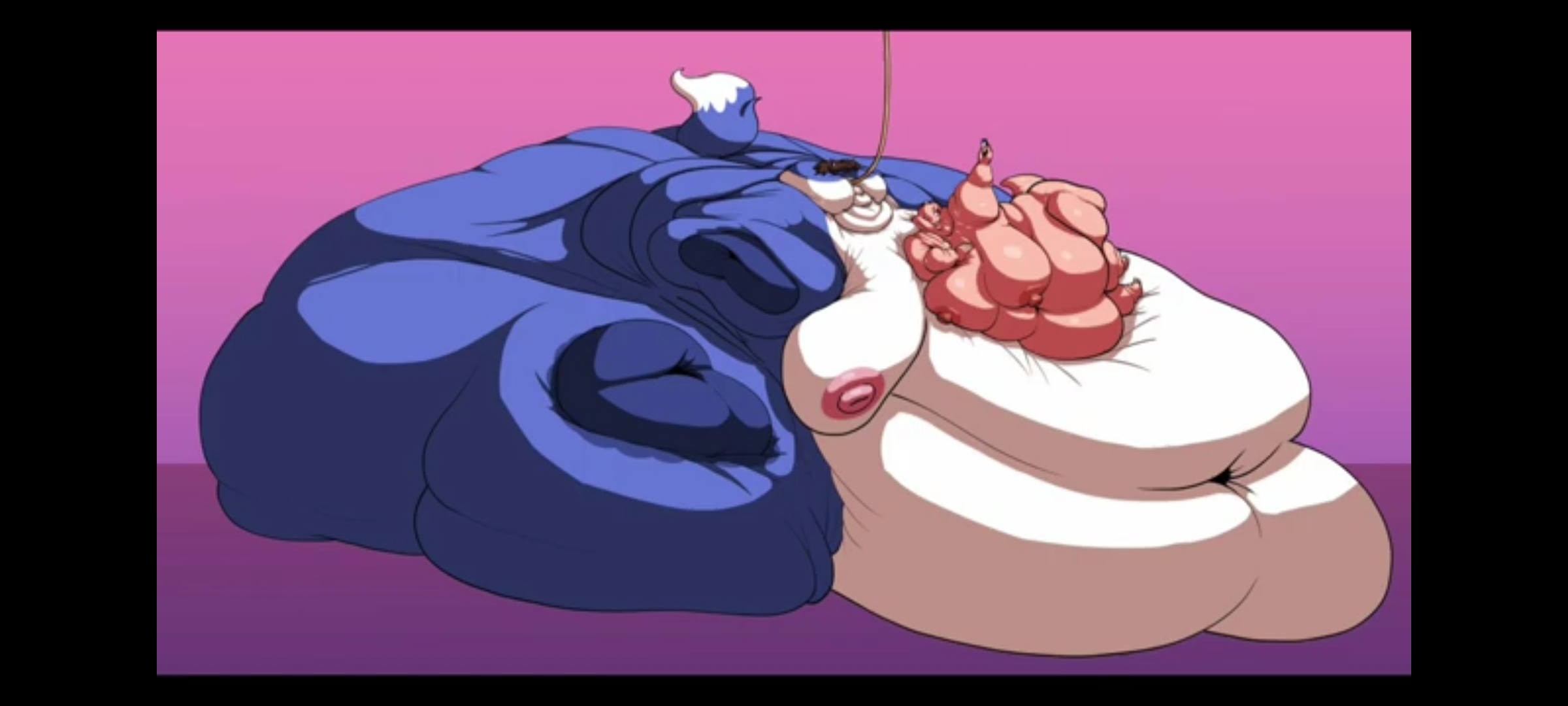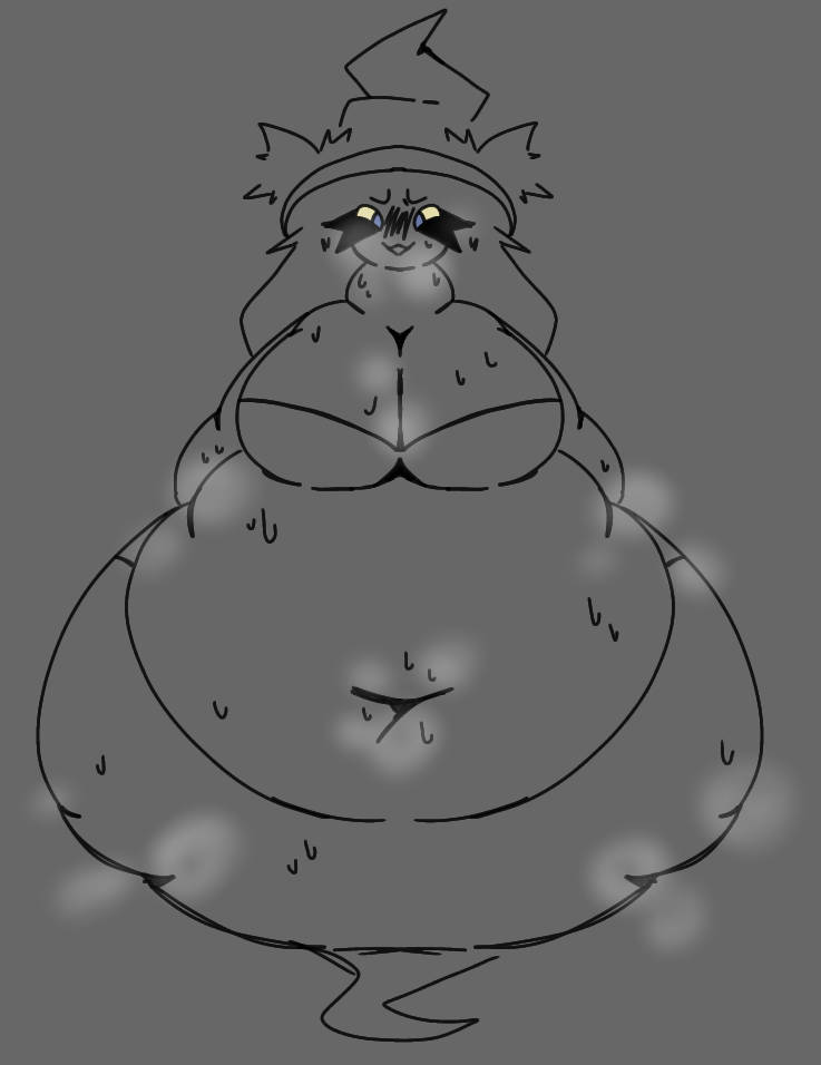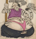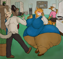 i'm looking for a short blob wg comic/sequence of a black fur with white hair dressed in a pink skirt. she is a student in a school, and she inexplicably starts gaining weight rapidly, filling the hallway, then in the final panel, filling out the whole building with a zoomed out shot of her black fat overflowing through the windows and doors of the school. (i could be wrong about the colors, i am colorblind)