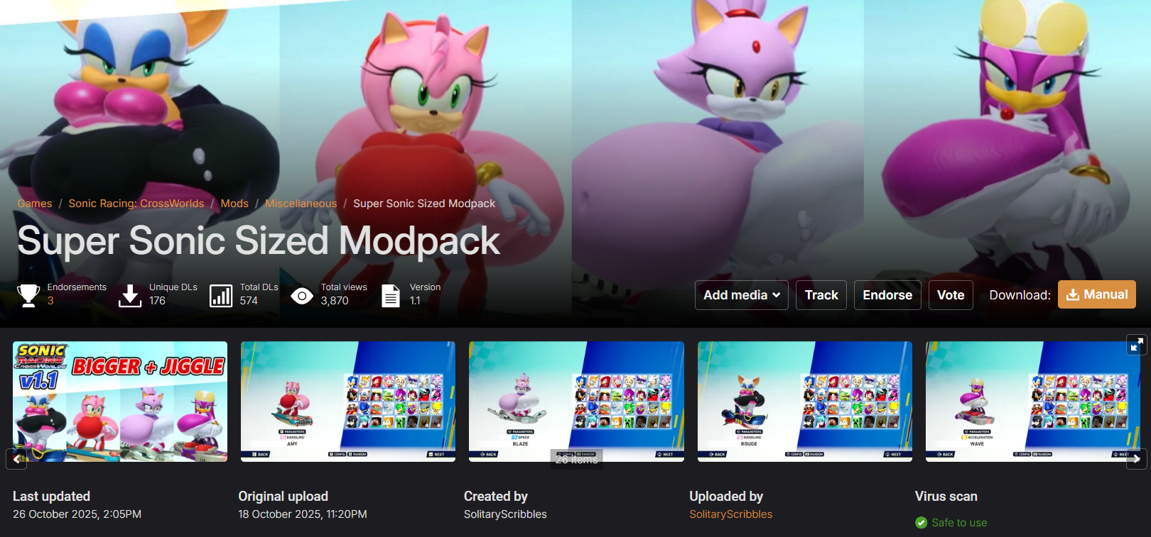 >>30798 Saw this from SolitaryScribbles, looks incredible. I know it's not really the right thread for this, but I wanted to post this to get the idea across that I was kinda wondering if anyone would be able to make a mod like this for Cream (and Sage too, I'd love to see that, but she's obviously not exactly like the others) too that makes her as big as the others, if not bigger. I'd grab it in a heartbeat.