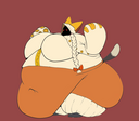 Her straps break open as her belly spills to the ground, her ass growing fatter and fatter as she keeps gorging on whatever food is there