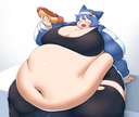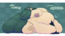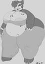 her gargantuan belly, pushing between her hammy thighs. By the time he