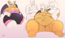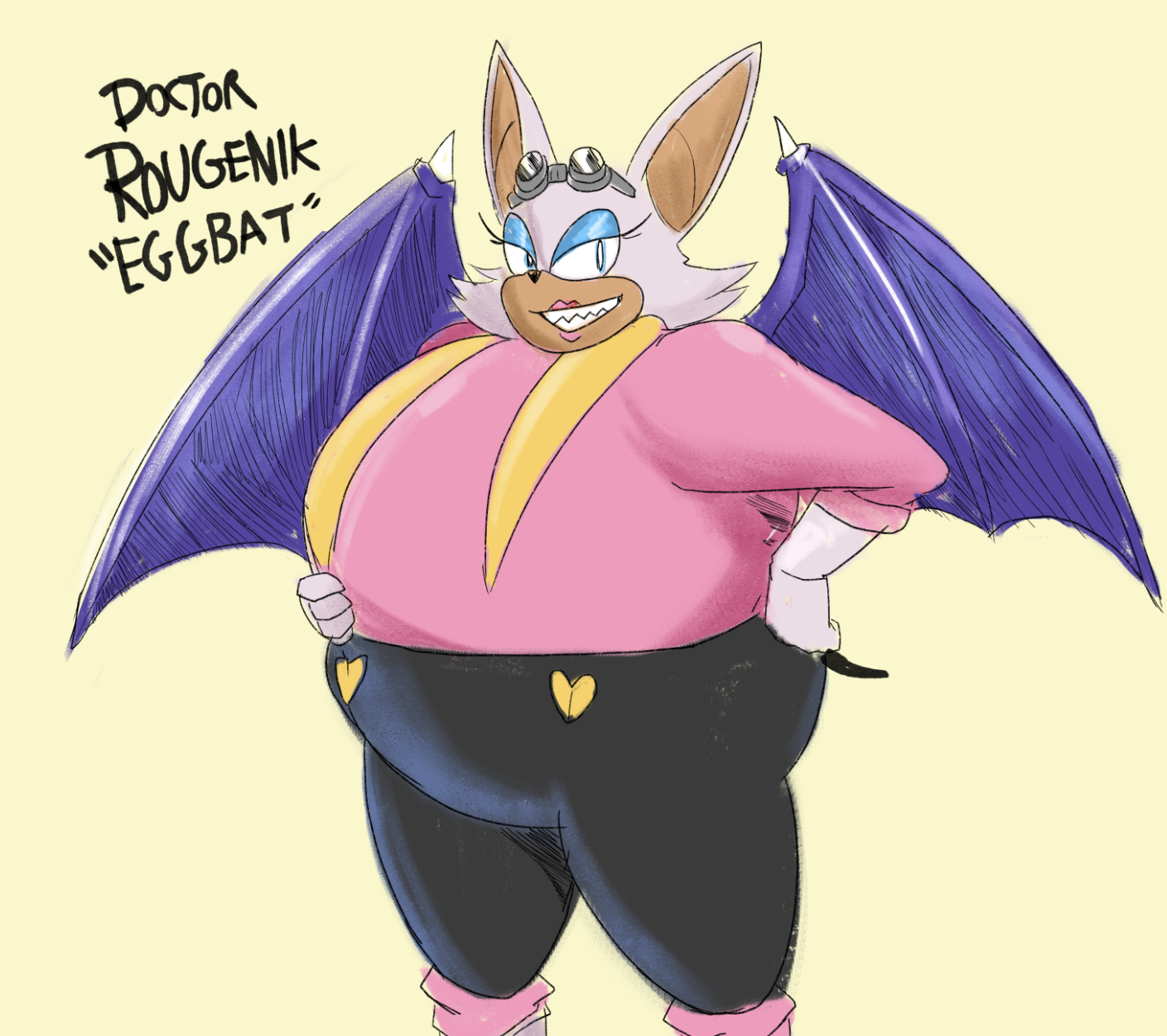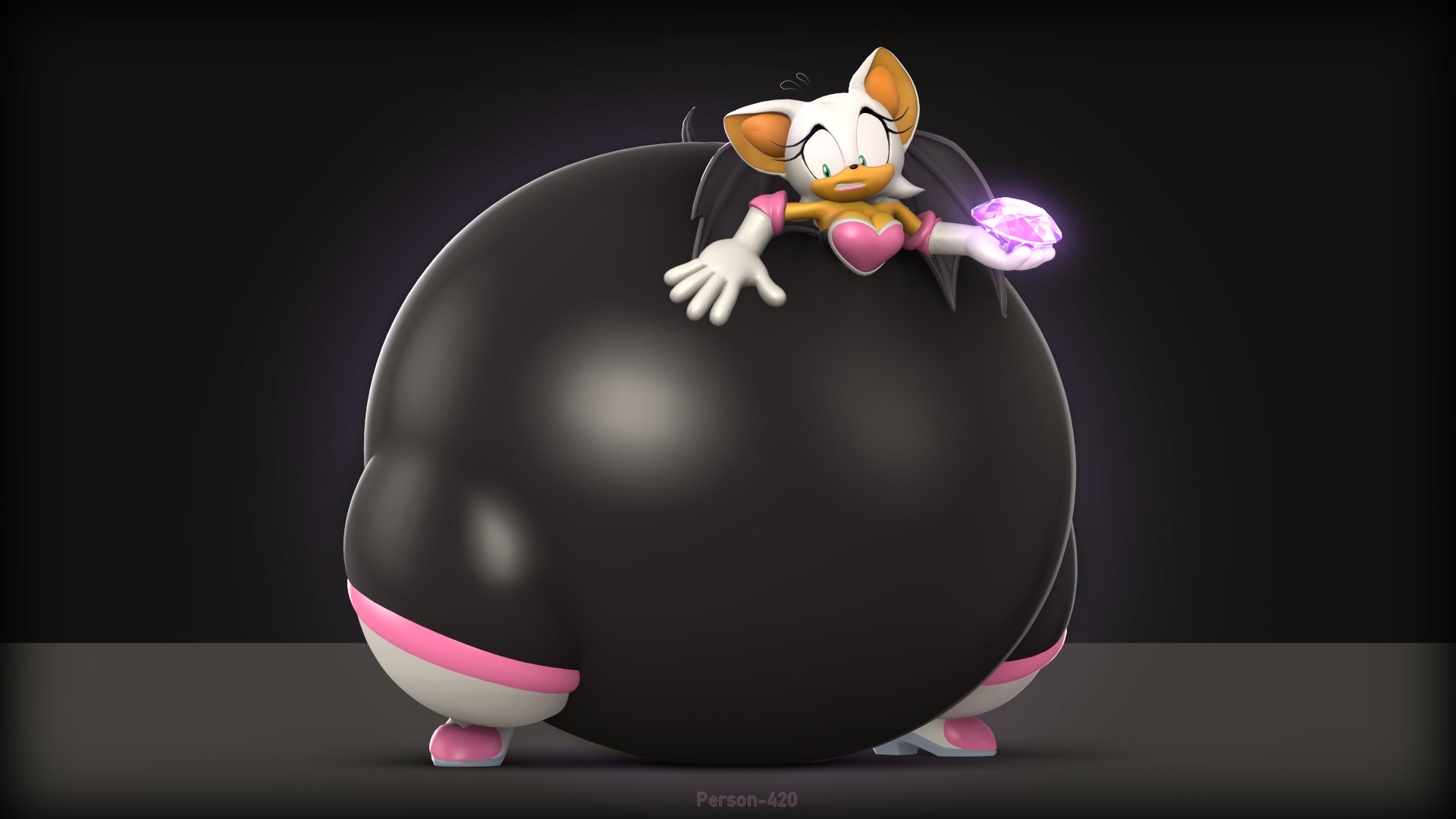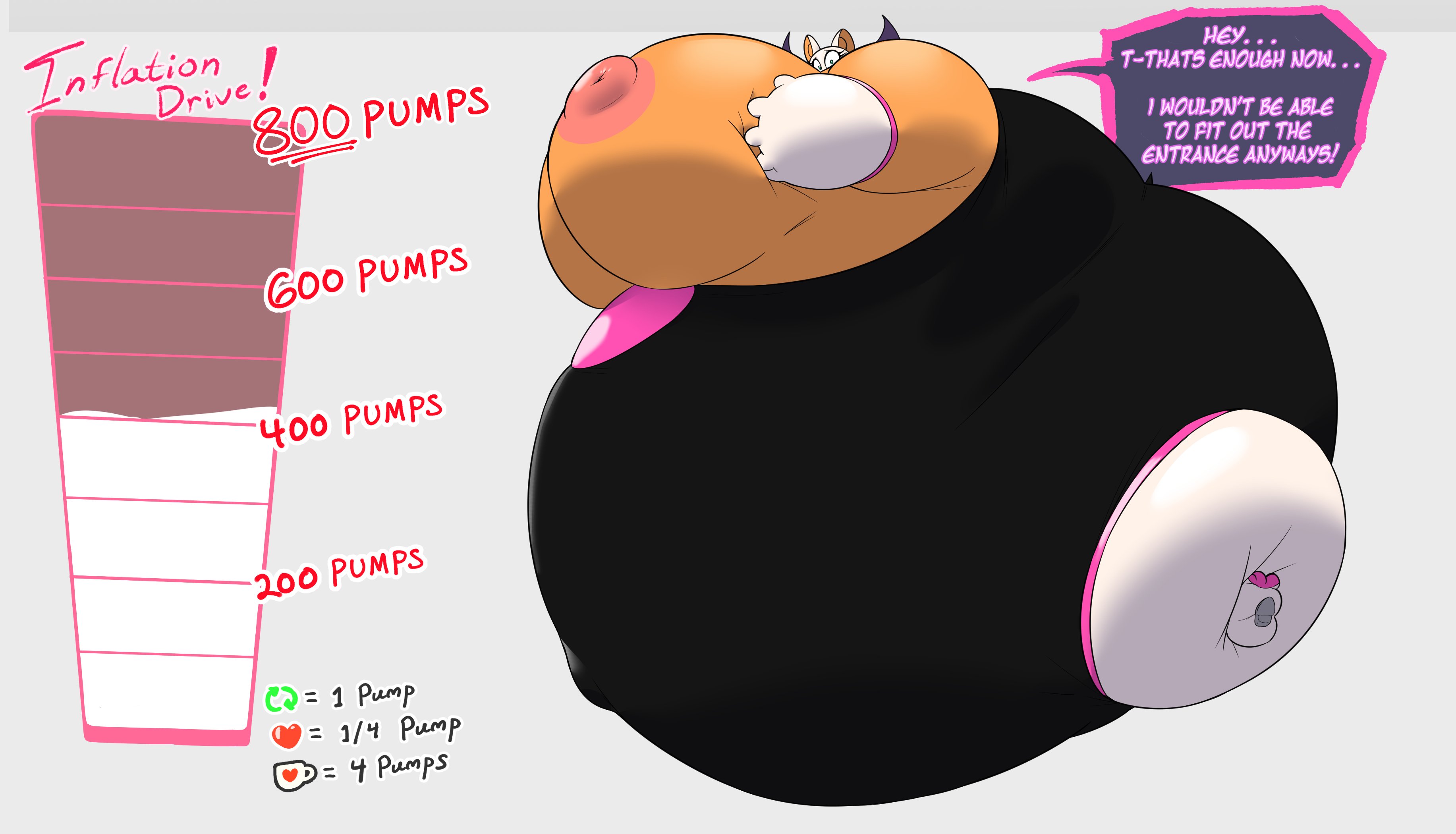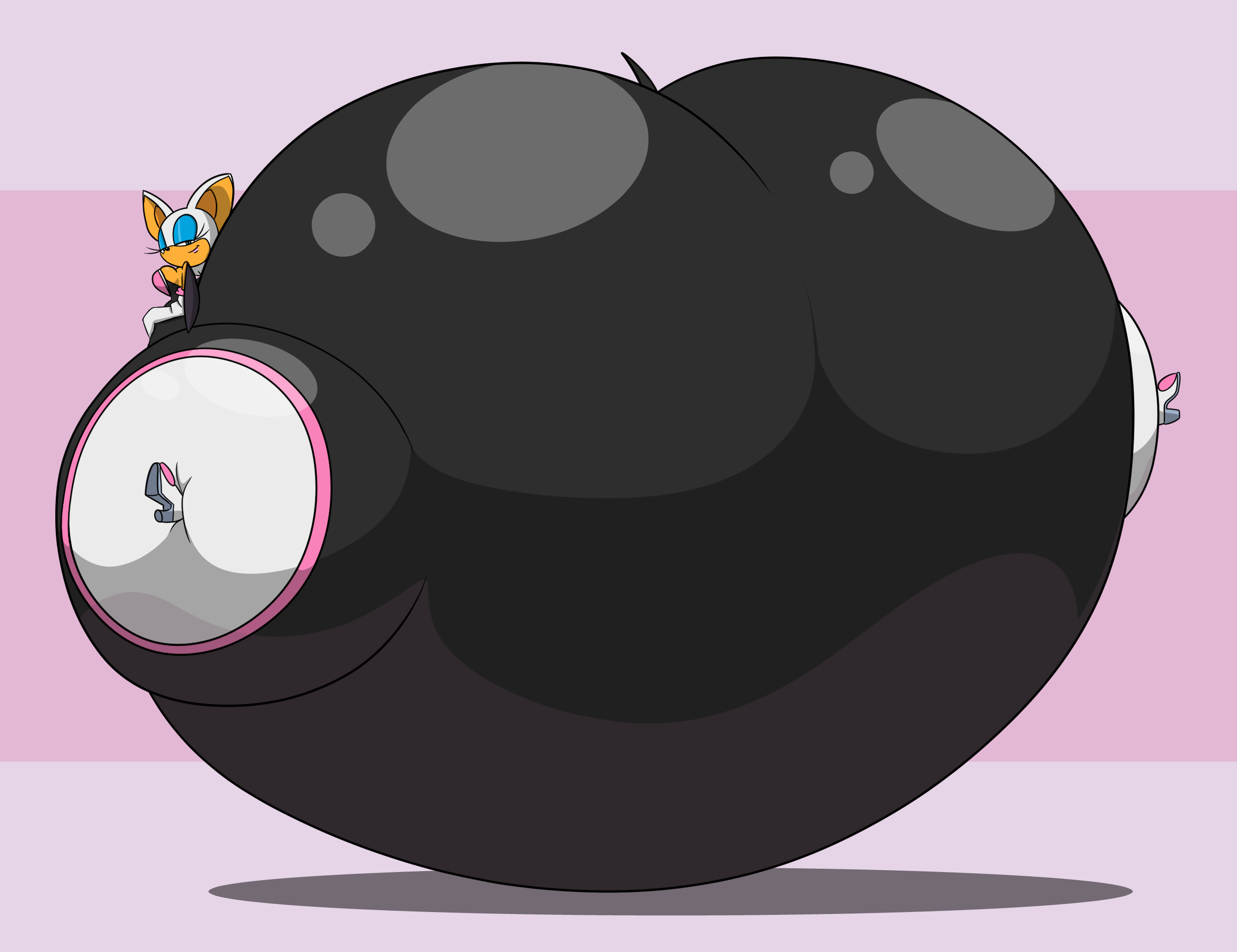The temperature was dropping, and winter was rapidly approaching. Baggy and warm clothes were off the charts in sales, everyone was wanting to warm up, buy unfortunately this style did not suit the one who desired to have her skin exposed to the public. Rouge, once an infamous treasure hunter, now the largest bat around, had a tendency of exposing her curves in the public, despite her super size figure she'd show no hesitation to flash her rolls, in fact this would influence the beauty standards, making obese women more of a standard when coming to attractiveness. Now onto the main part of the story, the rotund beast refused to give into Winter, she wanted to remain in nothing but bras and panties, luckily the intelligent bat came up with a solution. Exponentially increasing her body mass would result a more warm coating of natural body fat, and what better thing to have than hot chocolate, which would also heat you up. She gulped down gallons of hot chocolate, her Plump fat bombarded the space around her, coming out like tsunamis, and her breast spilt from her bra, and her panties were becoming more difficult to see, showing only her massive monstrous cheeks. The bat was a behemoth, ravenous rouge, consumer of all that was fattening, her desperate attempts of fattening herself were successful as her rapid growth continued, each gulp she took was enough to make her whole body shake, as well as the ground. Soon enough she was massive, vastly larger than her original size, but she had achieved her quite simple goal of being plump enough to withstand the cold whilst wearing some sexy and revealing clothes.