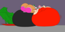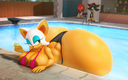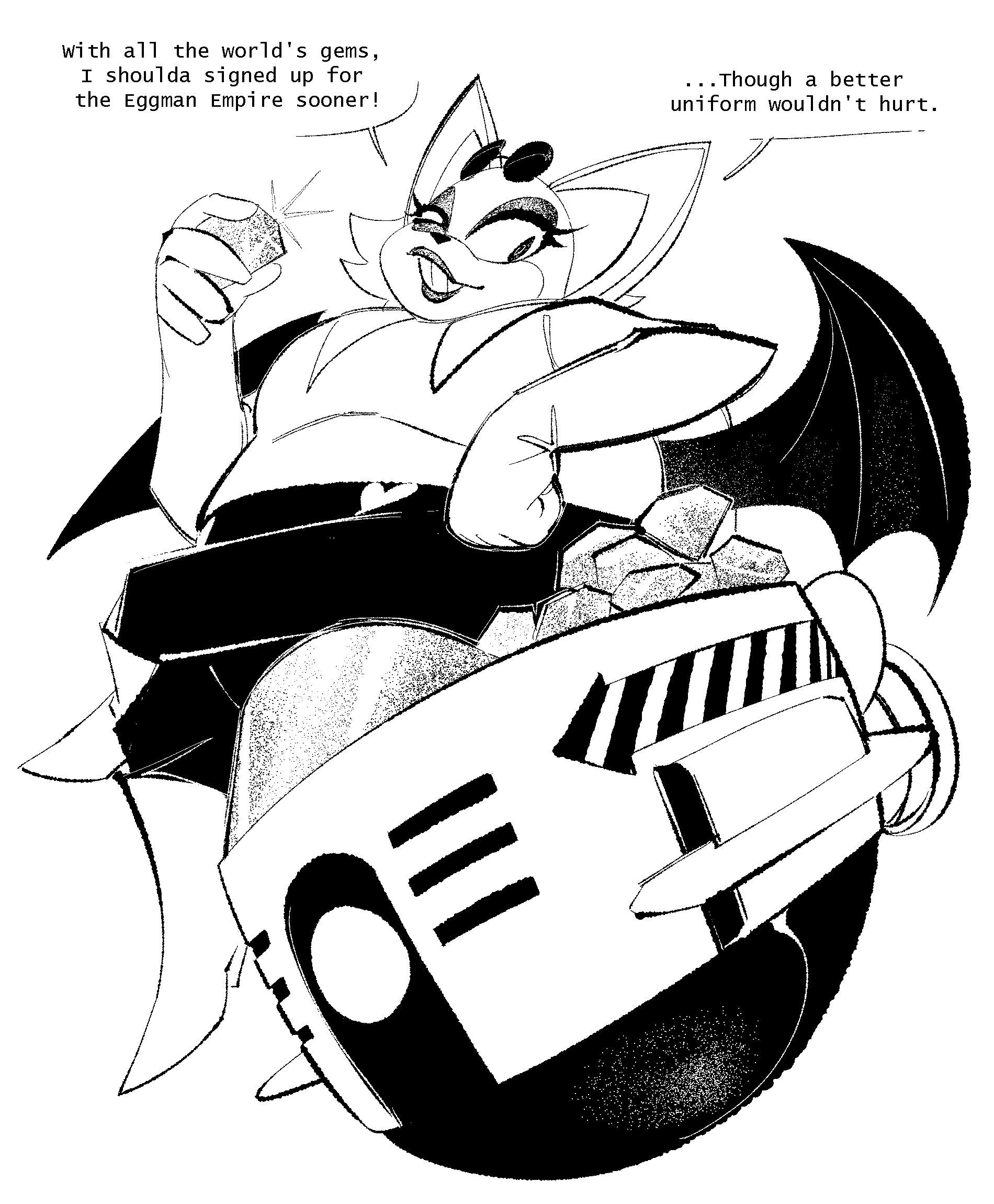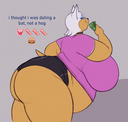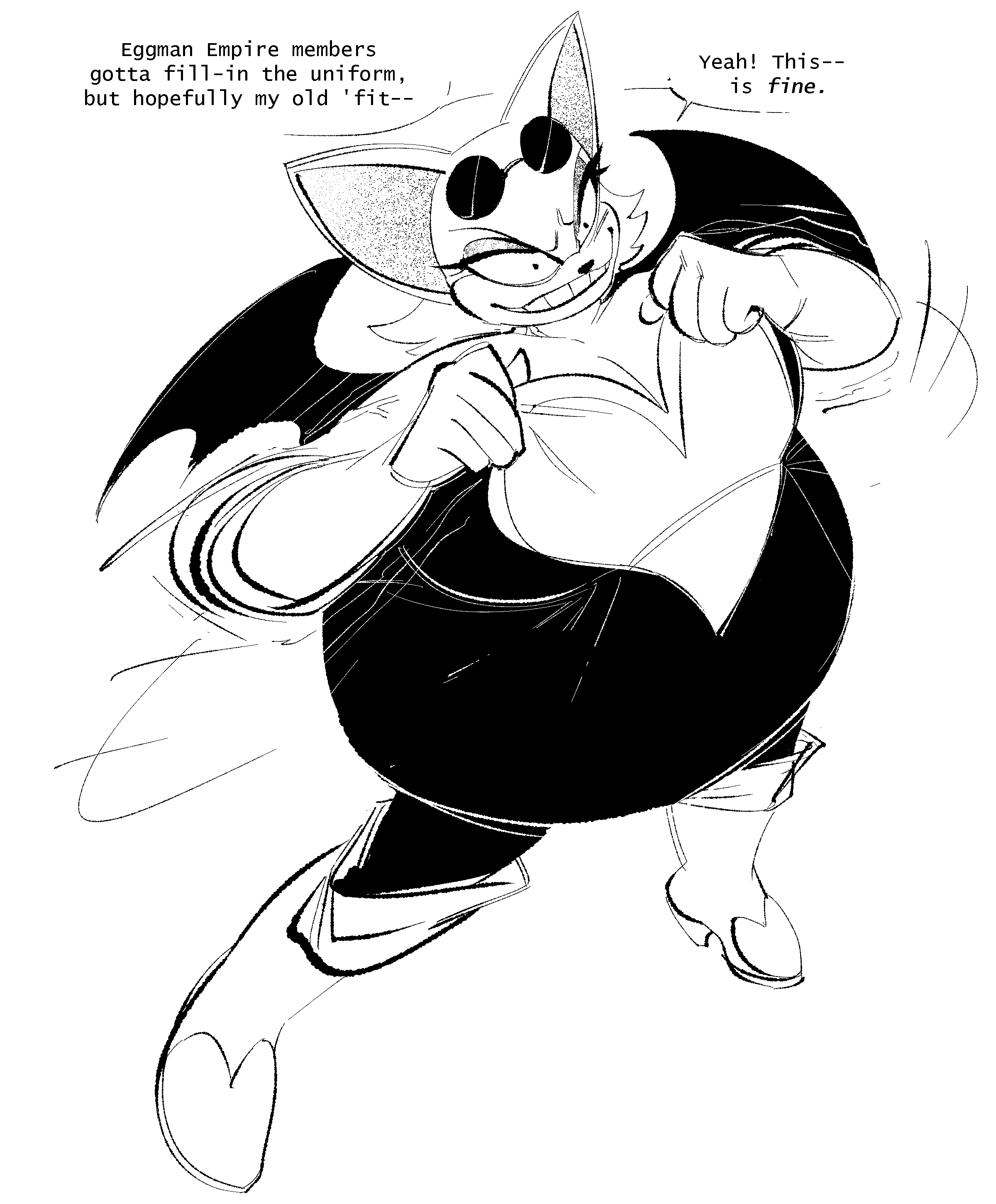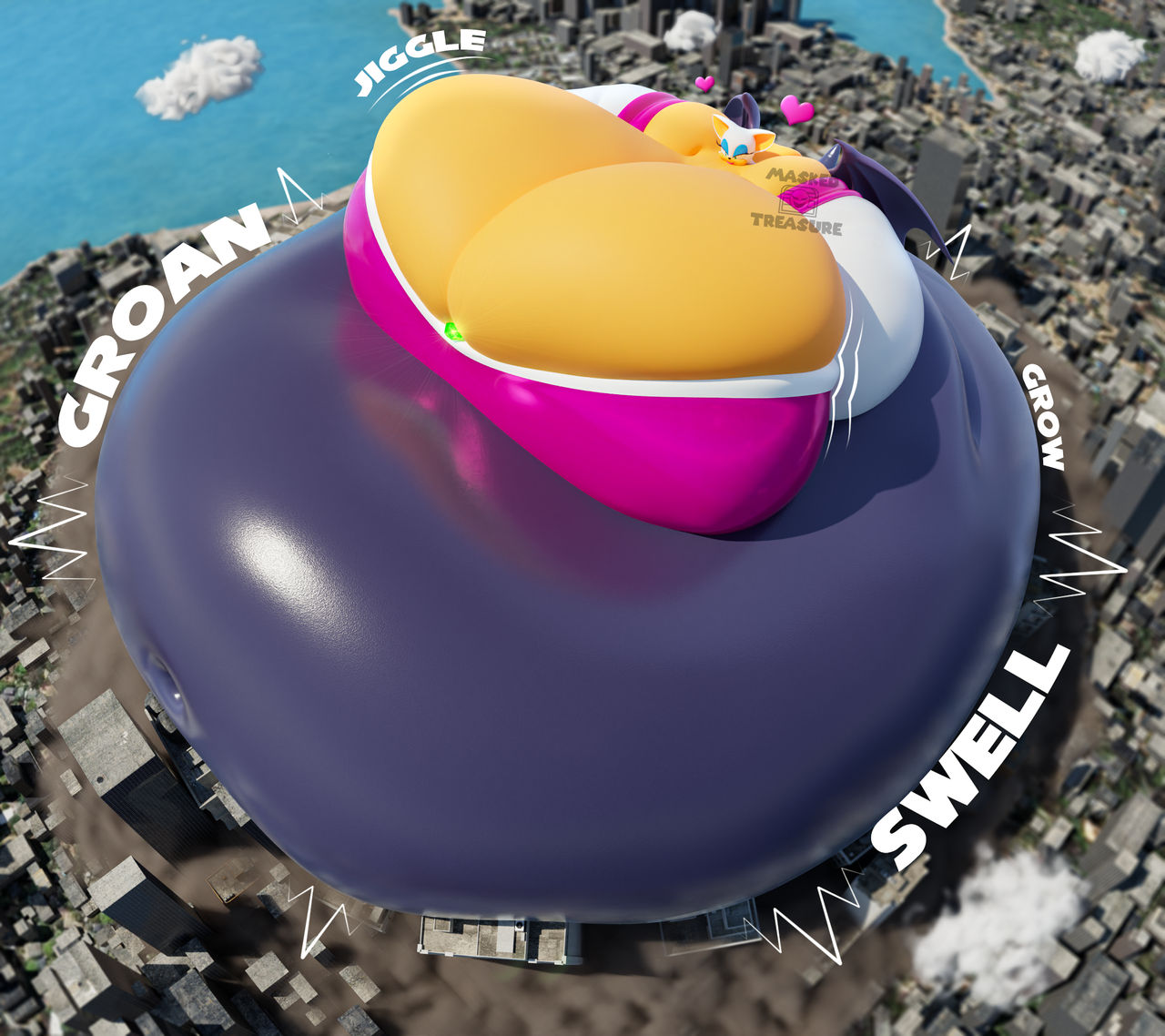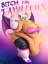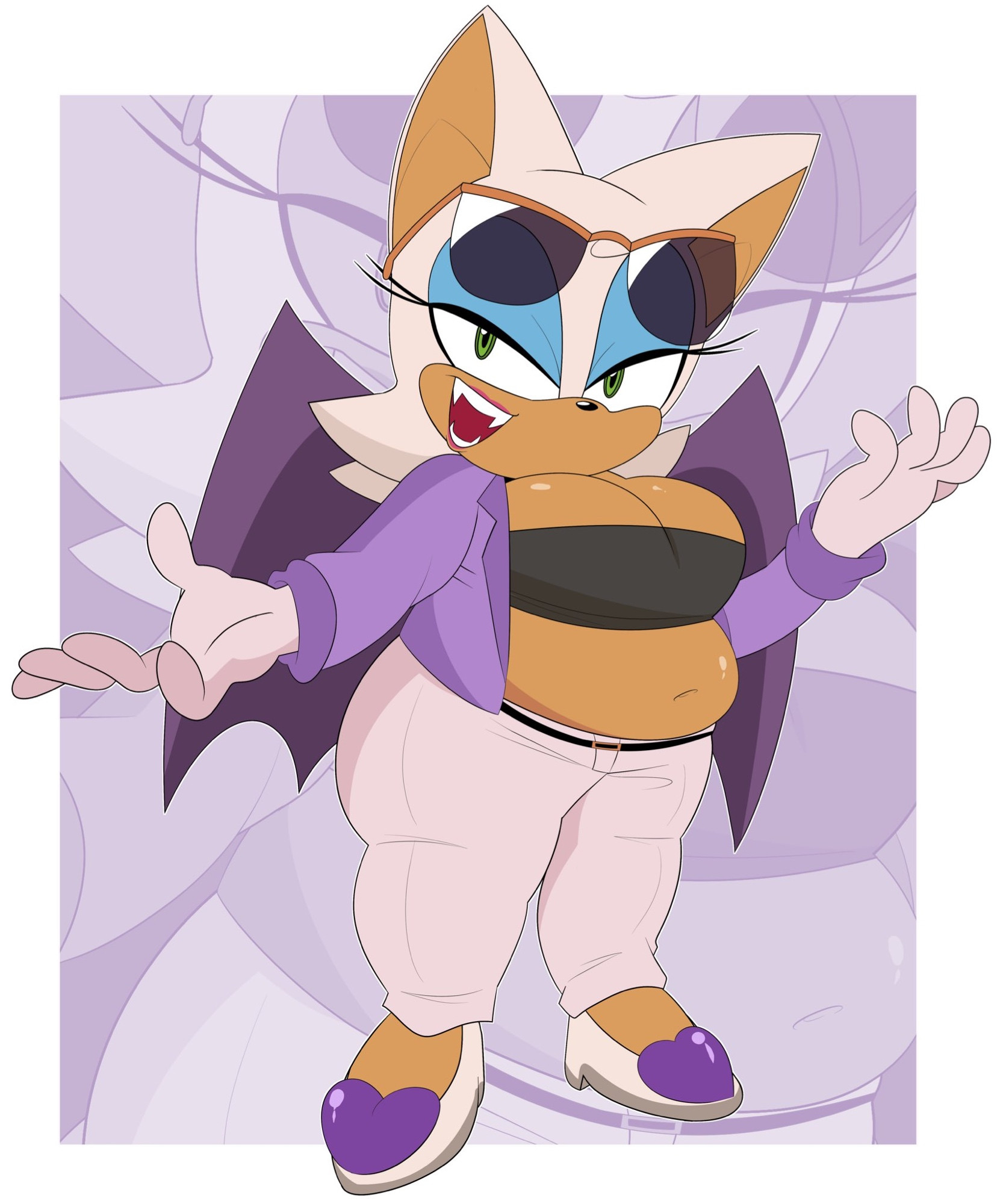 The temperature was dropping, and winter was rapidly approaching. Baggy and warm clothes were off the charts in sales, everyone was wanting to warm up, buy unfortunately this style did not suit the one who desired to have her skin exposed to the public. Rouge, once an infamous treasure hunter, now the largest bat around, had a tendency of exposing her curves in the public, despite her super size figure she'd show no hesitation to flash her rolls, in fact this would influence the beauty standards, making obese women more of a standard when coming to attractiveness. Now onto the main part of the story, the rotund beast refused to give into Winter, she wanted to remain in nothing but bras and panties, luckily the intelligent bat came up with a solution. Exponentially increasing her body mass would result a more warm coating of natural body fat, and what better thing to have than hot chocolate, which would also heat you up. She gulped down gallons of hot chocolate, her Plump fat bombarded the space around her, coming out like tsunamis, and her breast spilt from her bra, and her panties were becoming more difficult to see, showing only her massive monstrous cheeks. The bat was a behemoth, ravenous rouge, consumer of all that was fattening, her desperate attempts of fattening herself were successful as her rapid growth continued, each gulp she took was enough to make her whole body shake, as well as the ground. Soon enough she was massive, vastly larger than her original size, but she had achieved her quite simple goal of being plump enough to withstand the cold whilst wearing some sexy and revealing clothes.