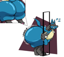 Hi, I remember seeing some arts here of a fat Lucario, locked in his house, watching TV and depressed. They were in black and white. Can you help me find them?