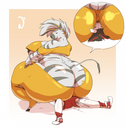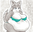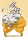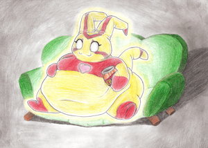 I know it was about a female anthor pokemon, most likely a pikachu/raichu college student who pigged out in school, and it described in detail her struggling to get out of bed and across the room to get to her mobility scooter.