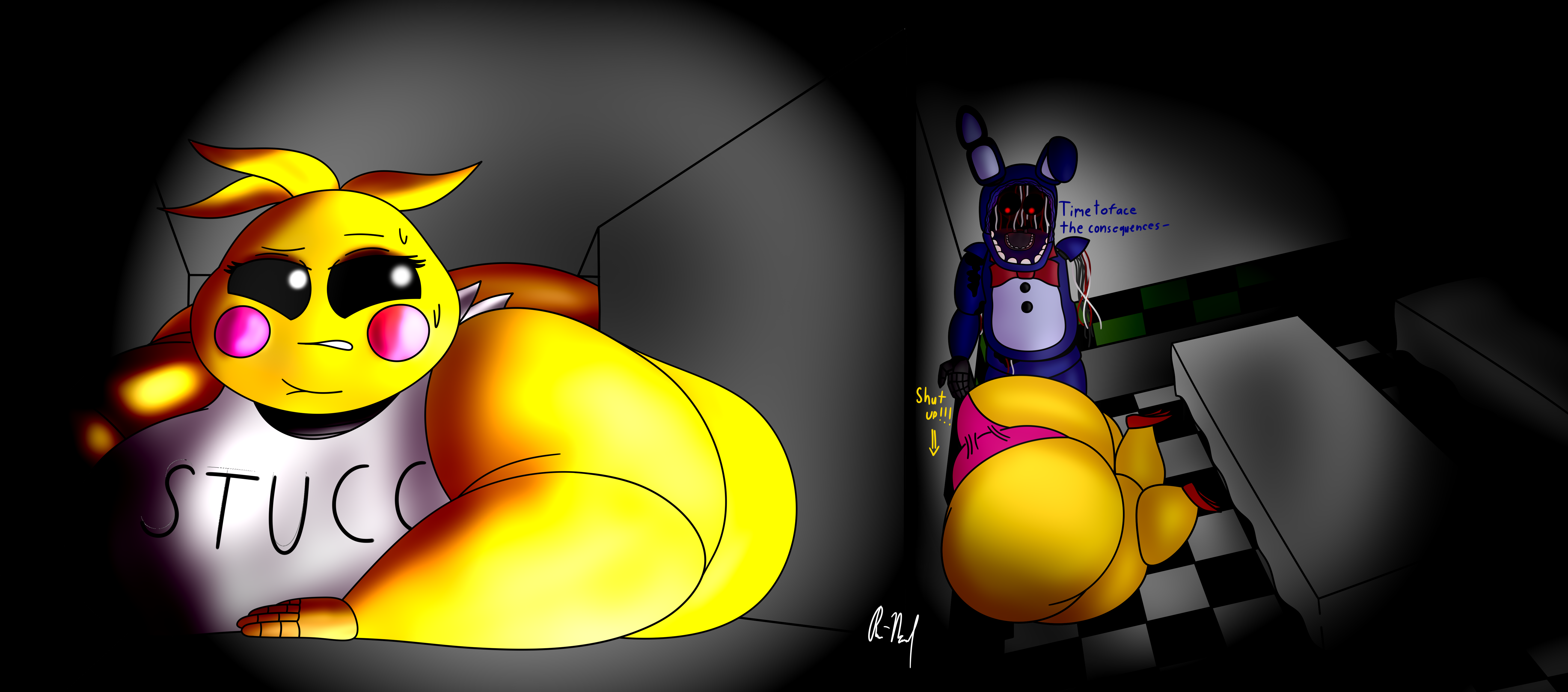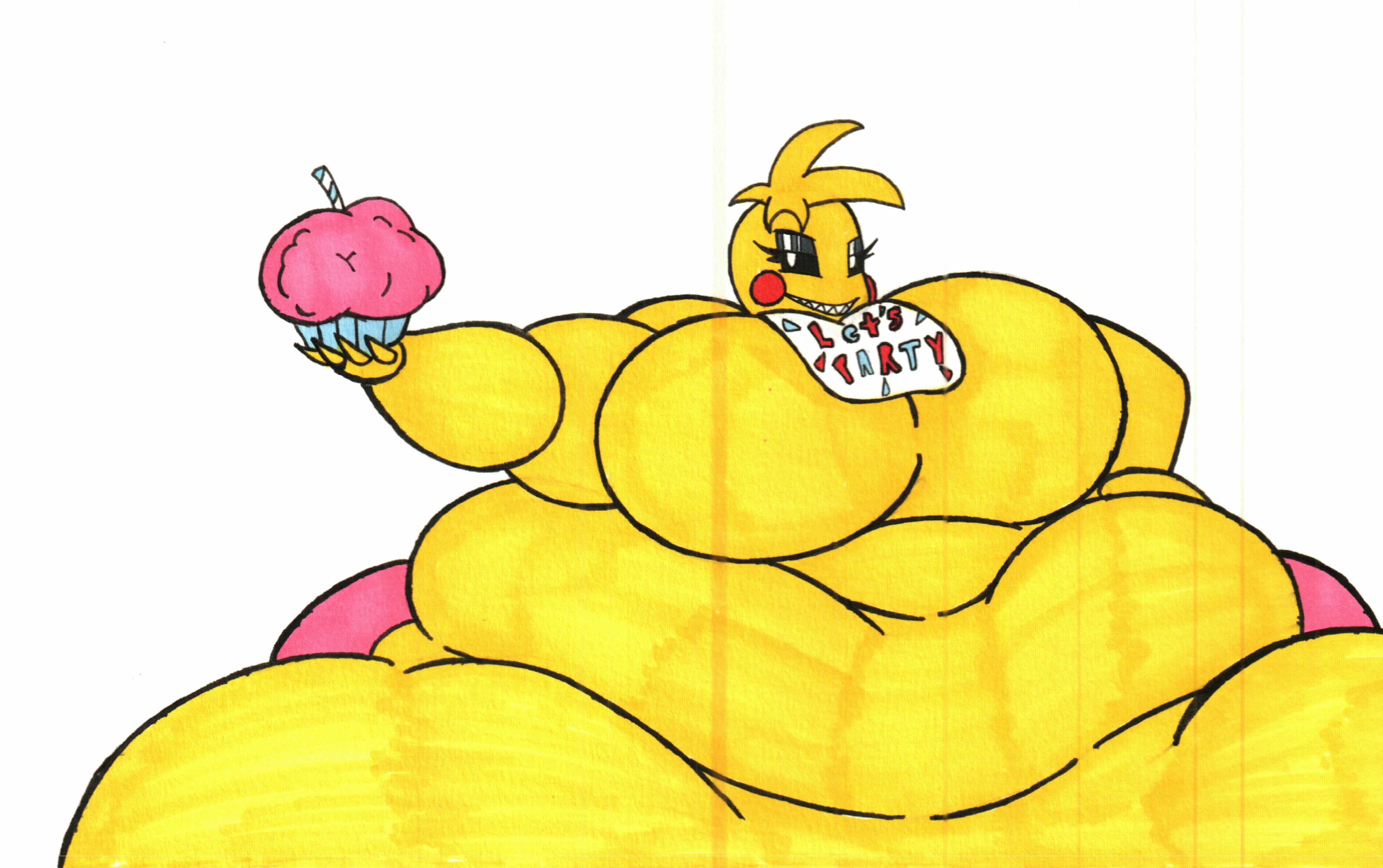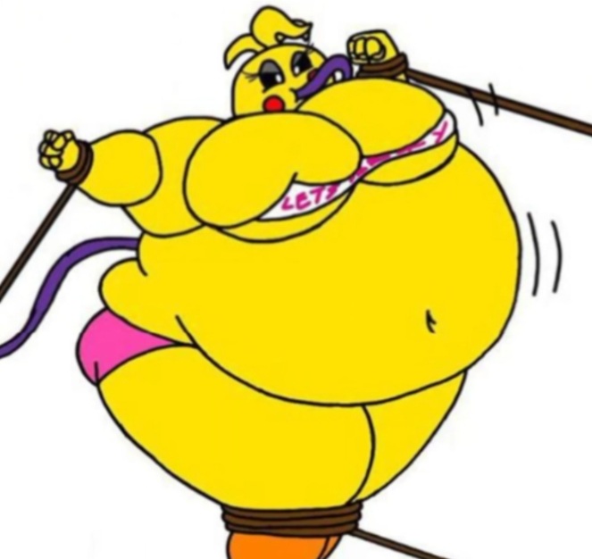 >>92385 Well she didn't briefly became fat in cannon but my awakening in fat fetish is Toy Chica from Fnaf 2