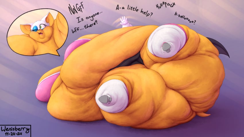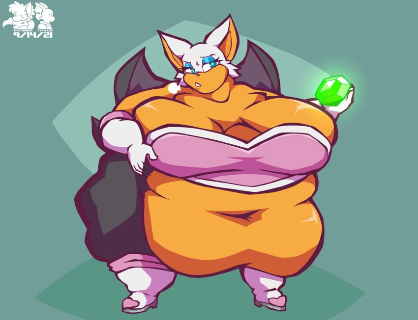 Bumping this threa with my girl Rouge. I already explained the whole Sonic character shape things, but given her whole personality of decadence and elegance, I imagine out bat girl really enjoys herself some fine dining... alot... Also, surprise cameo from Topaz!