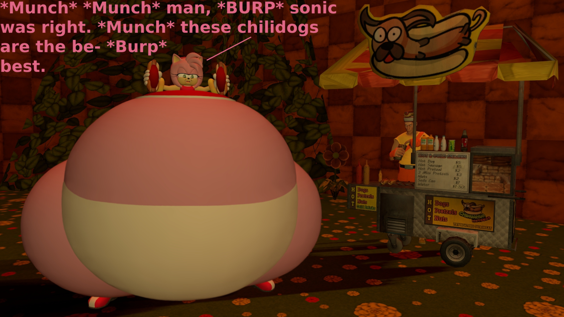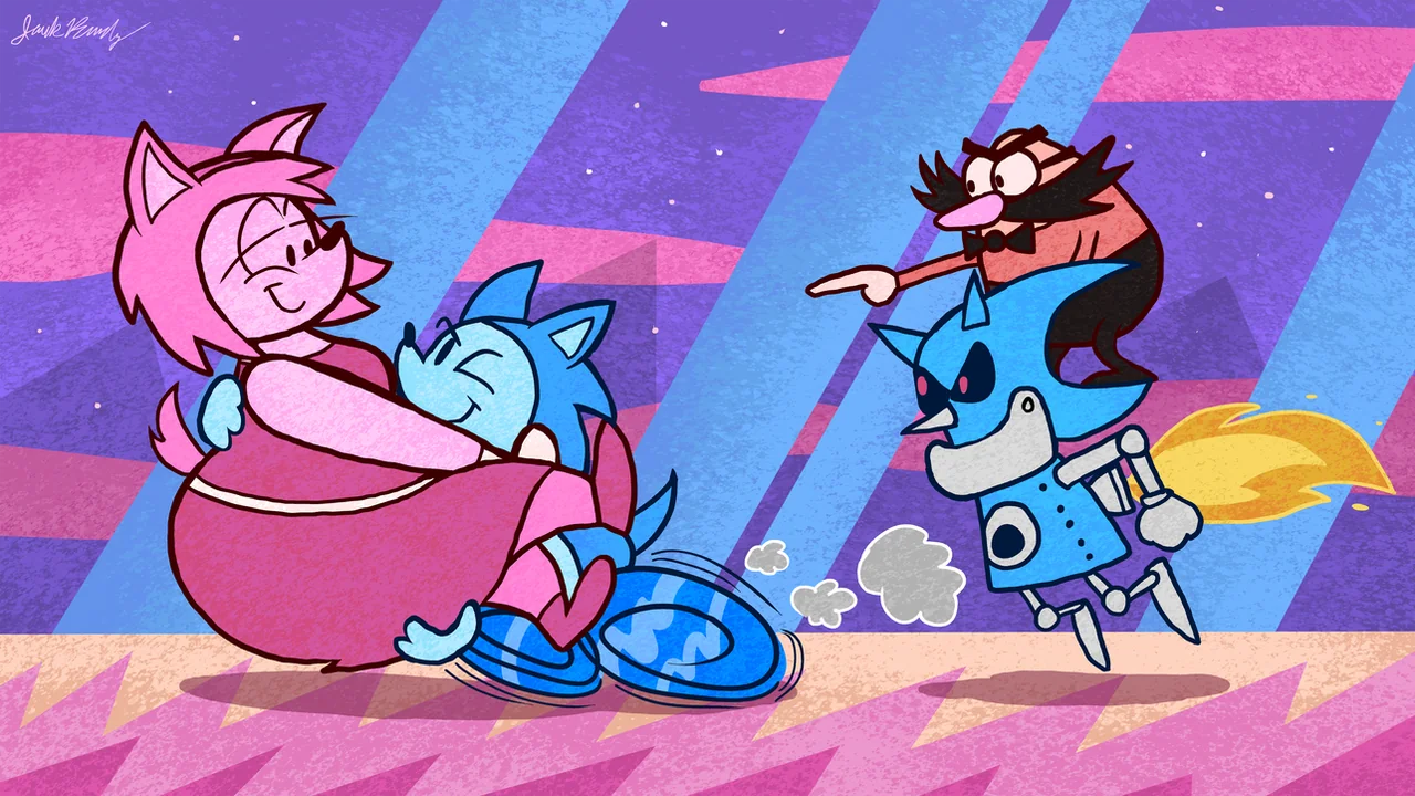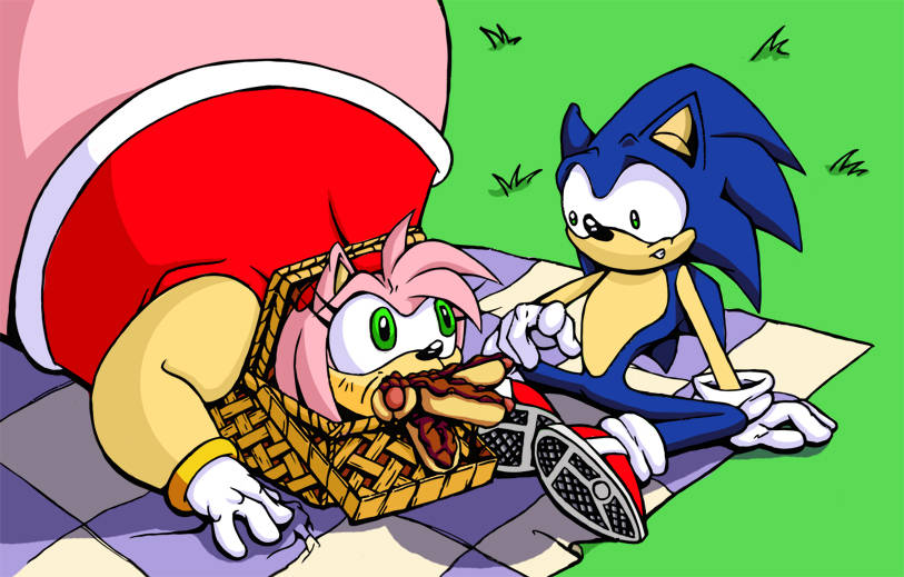 >>88851 >>88909 Speaking of which, fat art of Amy is one of the reasons that got me in the Sonamy crowed. Not only I think Amy with some extra pounds would make her cuter, but I just think Sonic would love to have a massive pink gf who acts as his comfy bed when he has a bad day. So I tried desperately to find good Sonamy art with a massive Amy and Sonic. I hope one day some one will make a Sonamy WG comic/sequence where Amy gets fatten up by Sonic.
