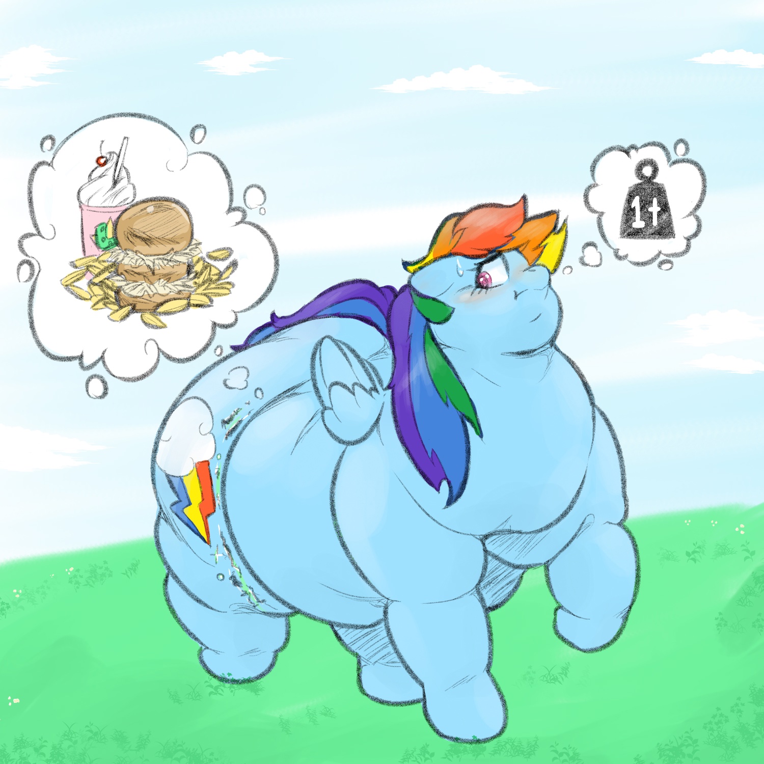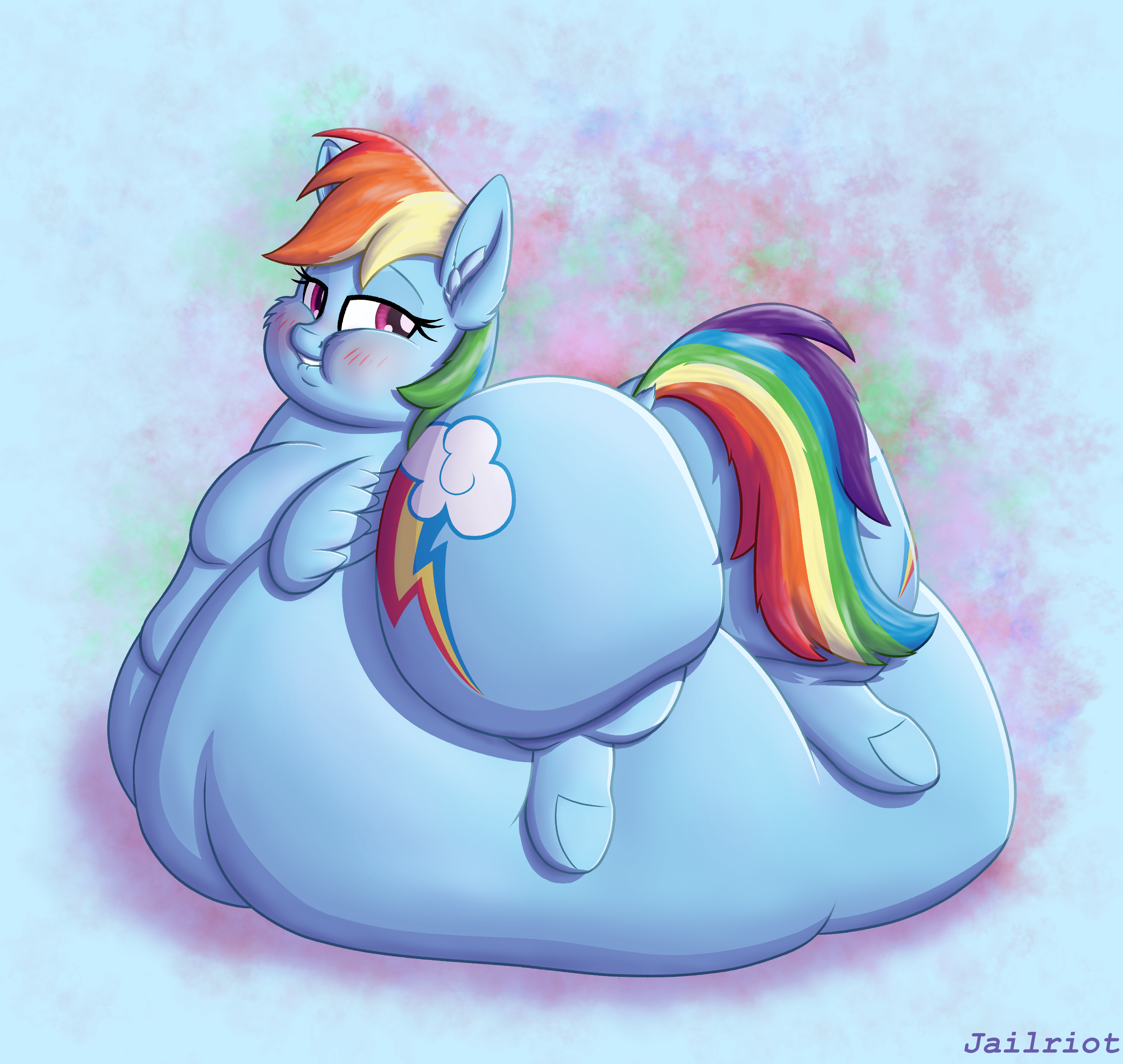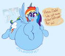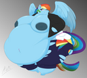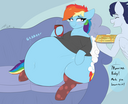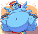 >>88322 Honestly, I think Rainbow Dash should just give up being the fastest flier and become the fattest(if ya know what I mean). She over-relies on flying, does take a lot of naps, and LOVES cider, so it shouldn't be hard to fatten her up.