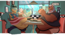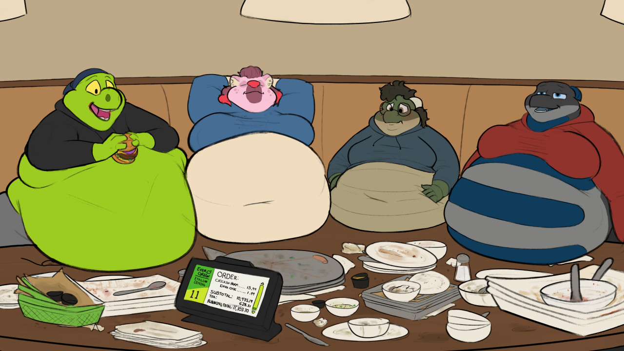 Post them fat bellies on the tables, stuck in the booths, ordering a 14th meal in a single day