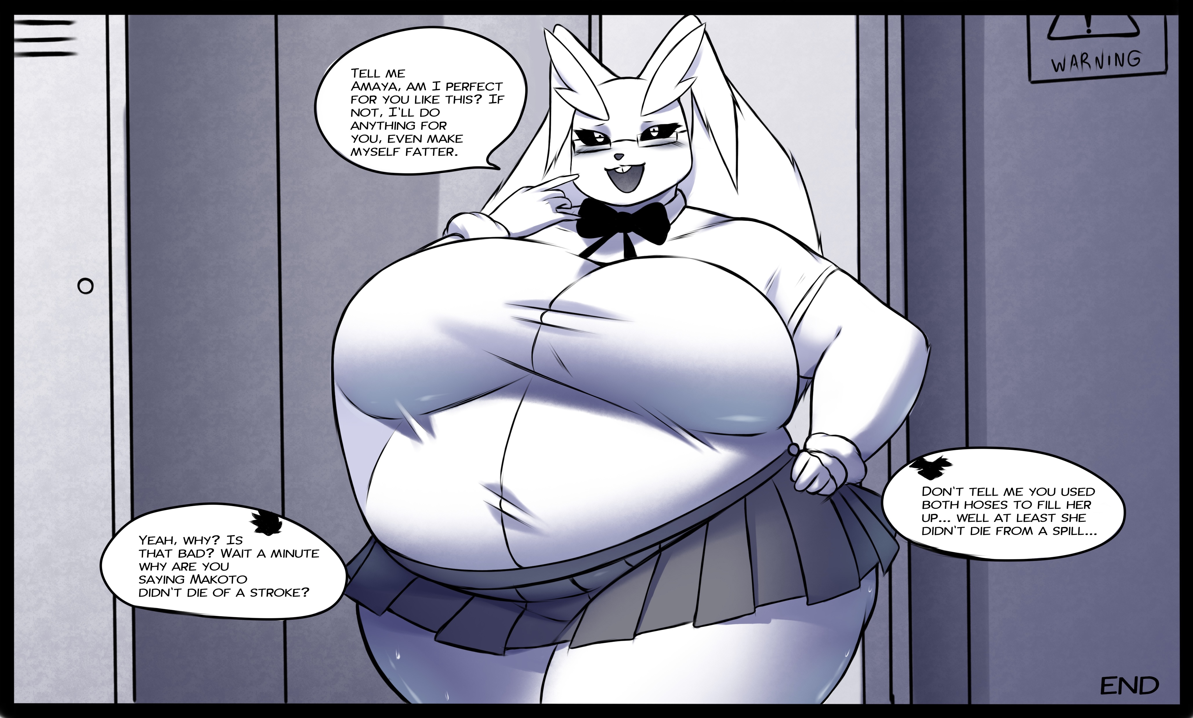 She said she was gaining weight as well, but she was never given anything that could imply something like that. I mean, it KIND of makes sense for the feeder to gain weight as well, but it never explains WHY Makoto started hiding her weight. She's not exactly obsessed to keep up with appearances, she is openly crazy after all, and never brought up about howshe looked like; so it makes the corset reveal feels forced and rushed, for the corset to be revealed without any hint just to be thrown away.