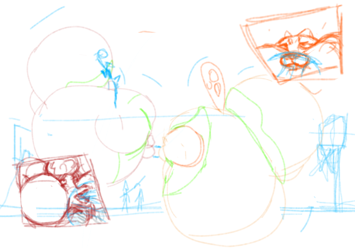 Hello! My suggestion is to have an aged up version of Will Harris from GOAT (Goat) and Jett Fillmore (Female Black Panther) from GOAT being blown up after biting into a super high pressure basketball Alternatively you can replace the Panther with Mane Attraction (Horse) from GOAT or replace both with Gazelle and Lola bunny I have provided sketches as guide PS, enlarge the panther’s chest if you choose to draw her, I didn’t know she was female lol