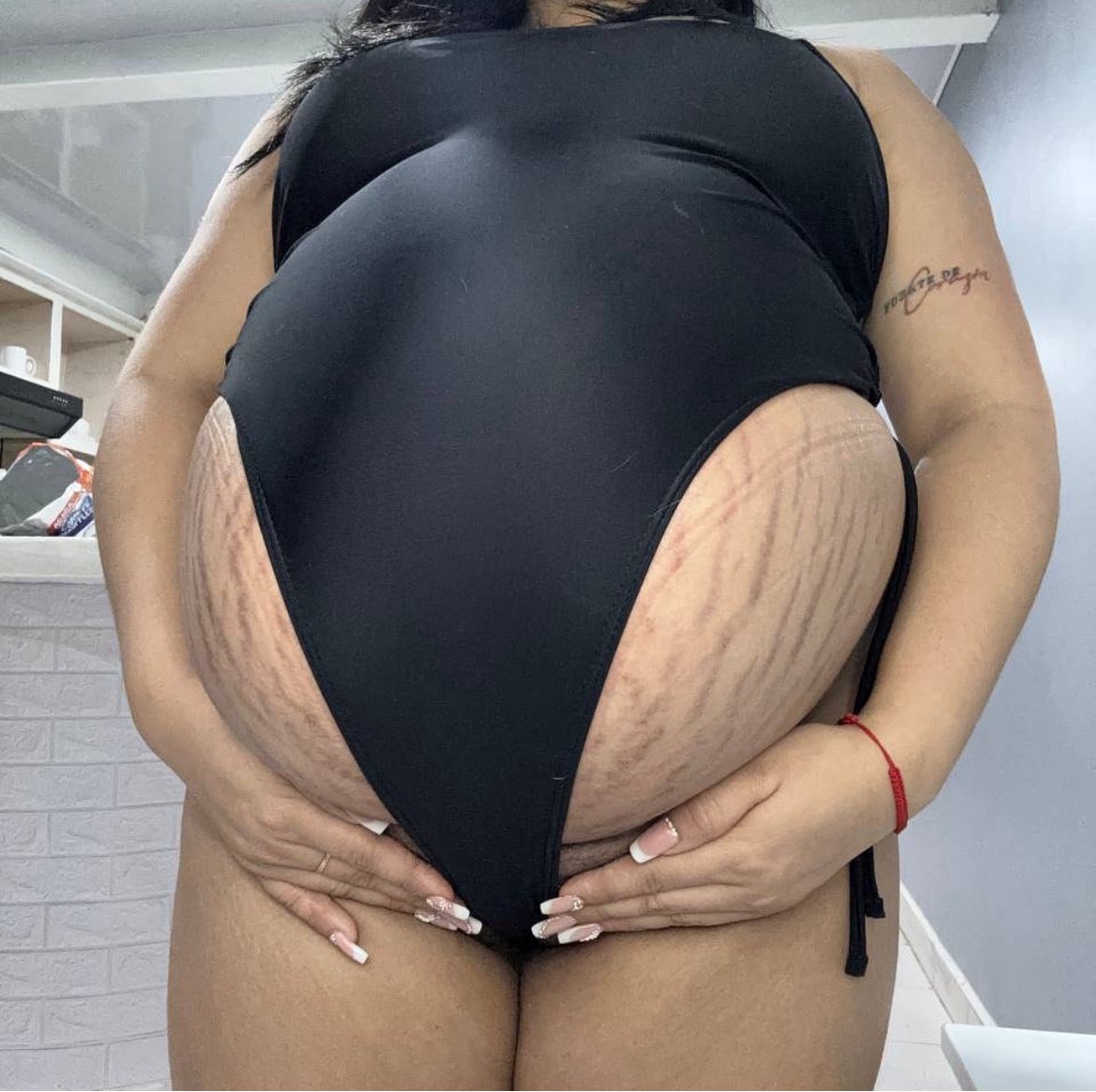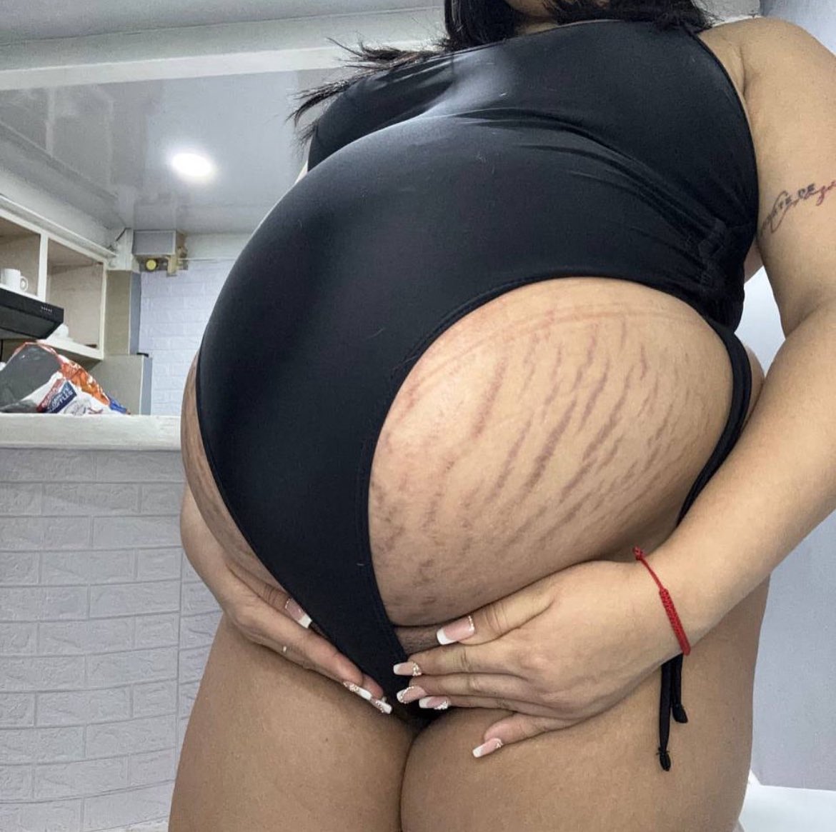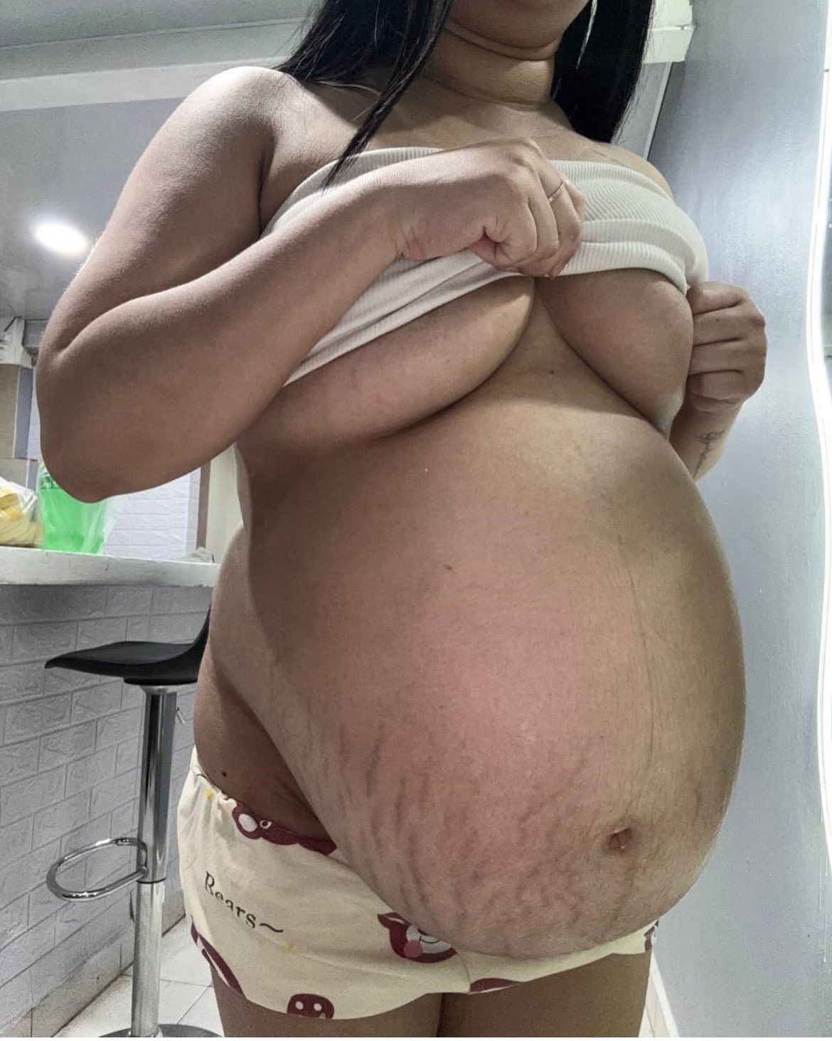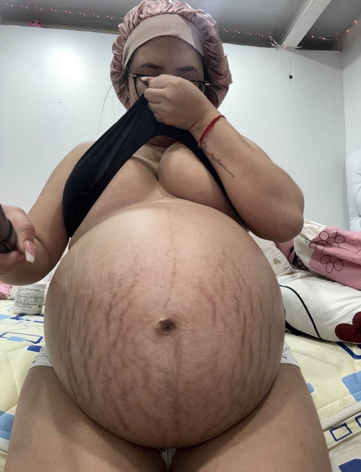 I have some of Voraisha's Patreon pictures. She's Latina, although I heard they were fake like she's using a belly prosthetic or morphing the pictures
