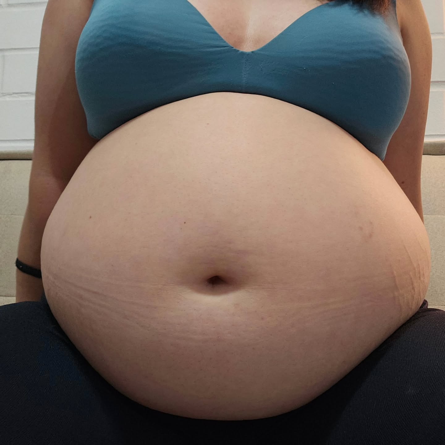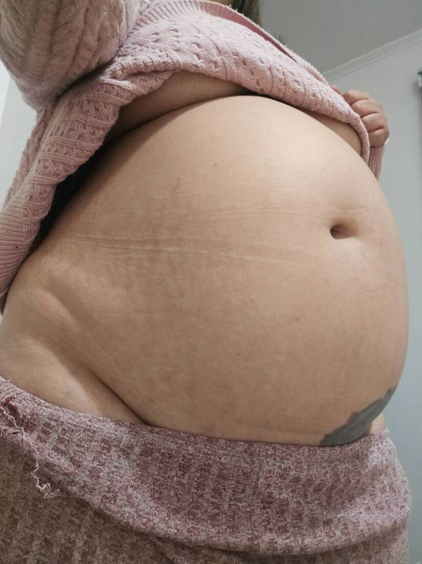 I was going to say the same thing. Her belly has looked pretty much the same for a while. Maybe a little flabbier and rounder but she's had the same shape for a while now, no right belly button and it's stayed very jiggly