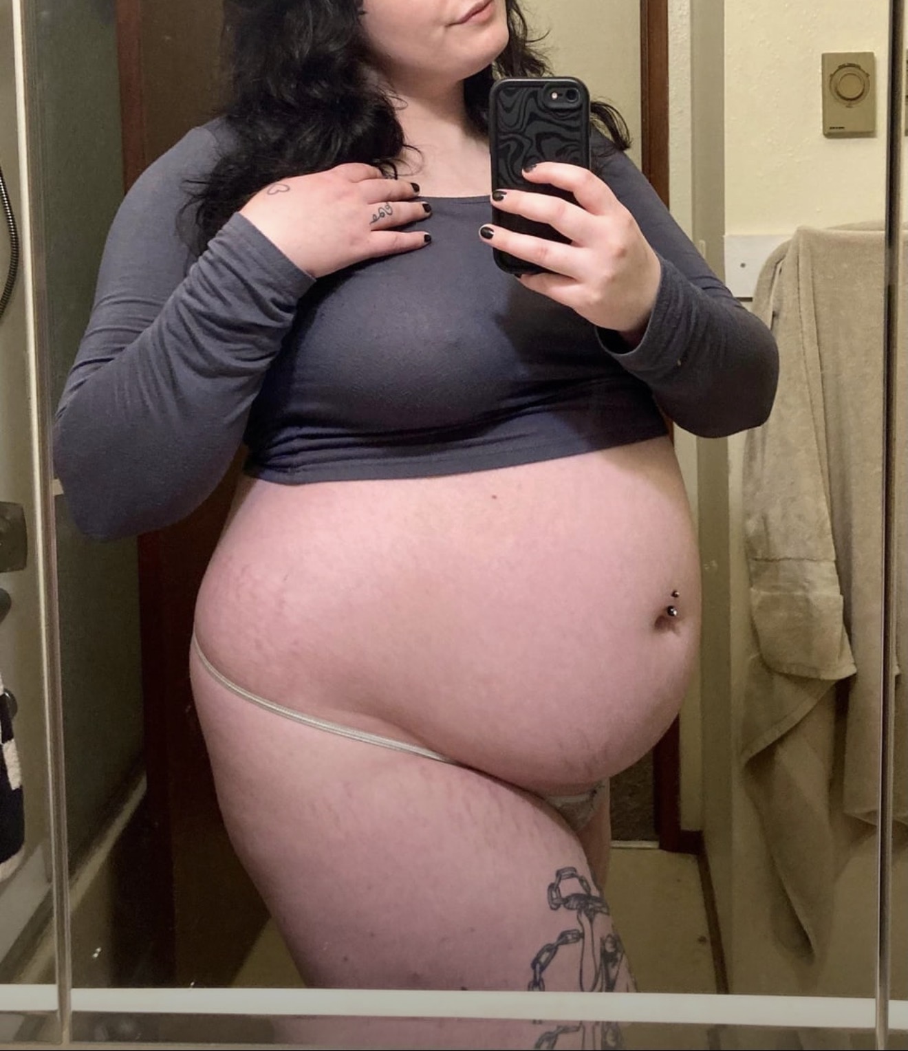 What a queen and what a belly! Love those tissues for hers too. You can tell she blew up quickly her skin is so tight, looking forward to that fat bedding in and things starting to sag... So hot.