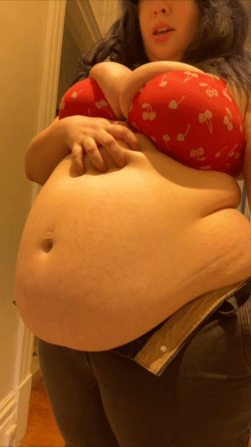 Oh my God! I love this woman. She's just so incredibly hot and sexy. I'd love to play with that big, sexy body all day and feed her. Her videos are very one-dimensional, but still so unbelievably sexy. I'd love to see someone play with her body or at least give her a massage after a big feeding. Ideally, I'd like to see her force-fed while being played with, followed by a nice belly massage to help with digestion. I'm praying we get to see it someday.