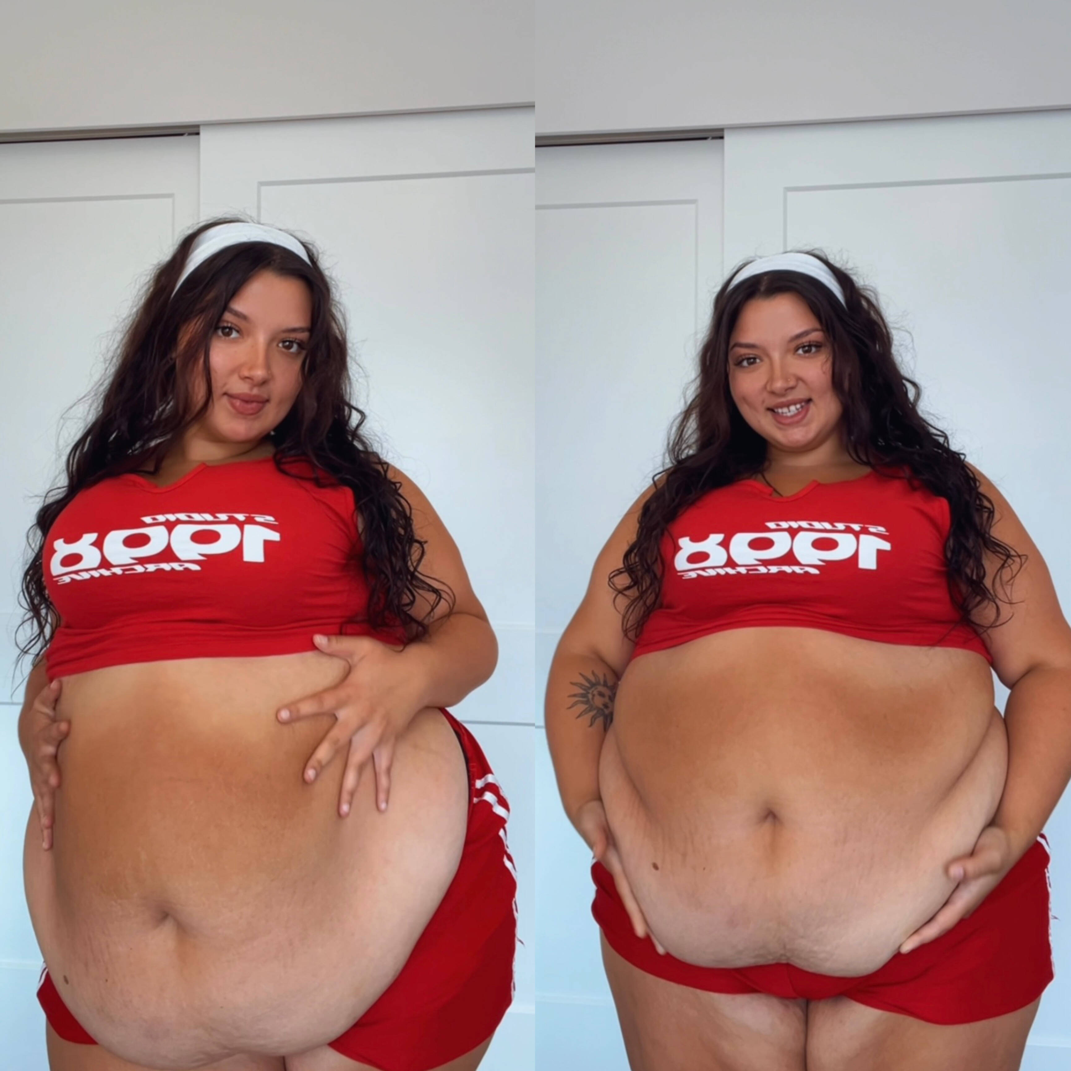 >>231404 No she’s smaller. She was around 330 at one of her first weigh ins and had a full round belly as you can see it’s a bit deflated now but she makes money milking coomers with her larps