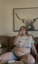 God dam that's one fine looking fat milf, getting hotter and thicker with each added pound. All we're missing if her partner being her feeder in videos haha