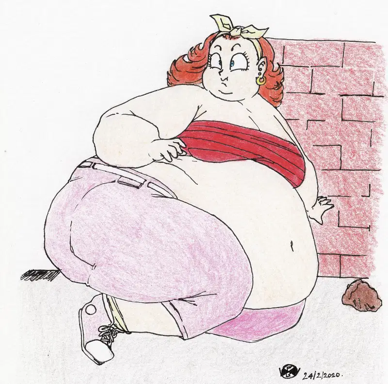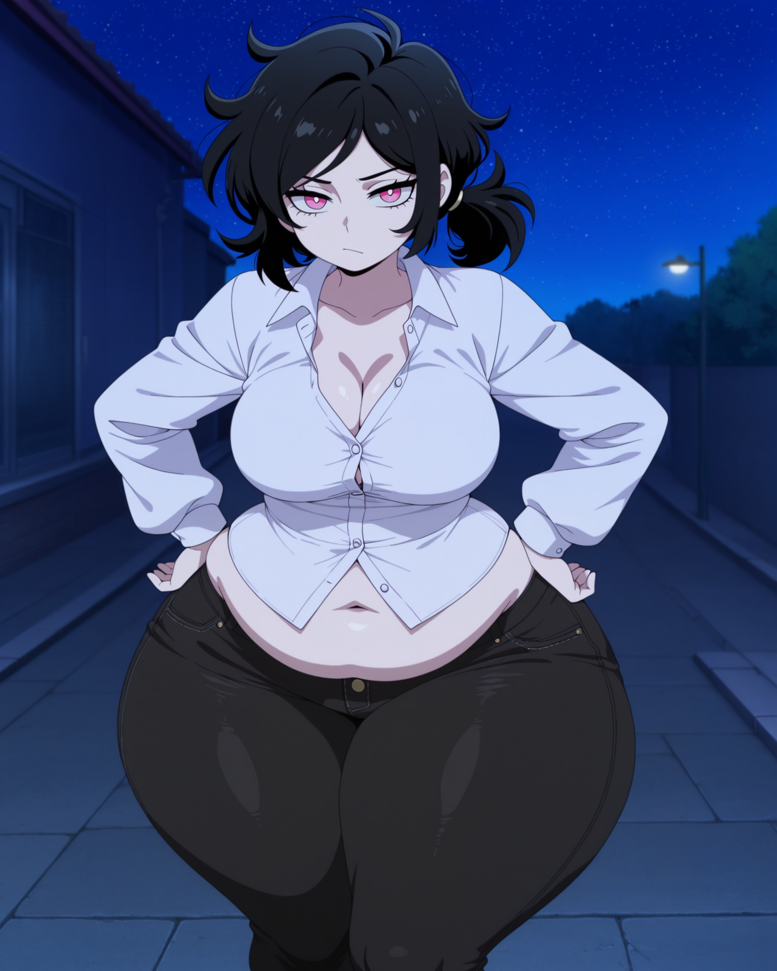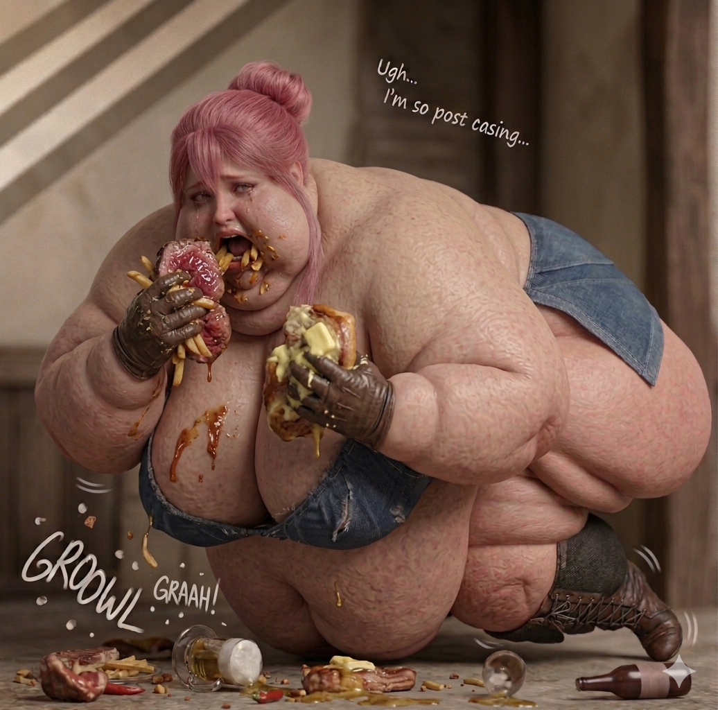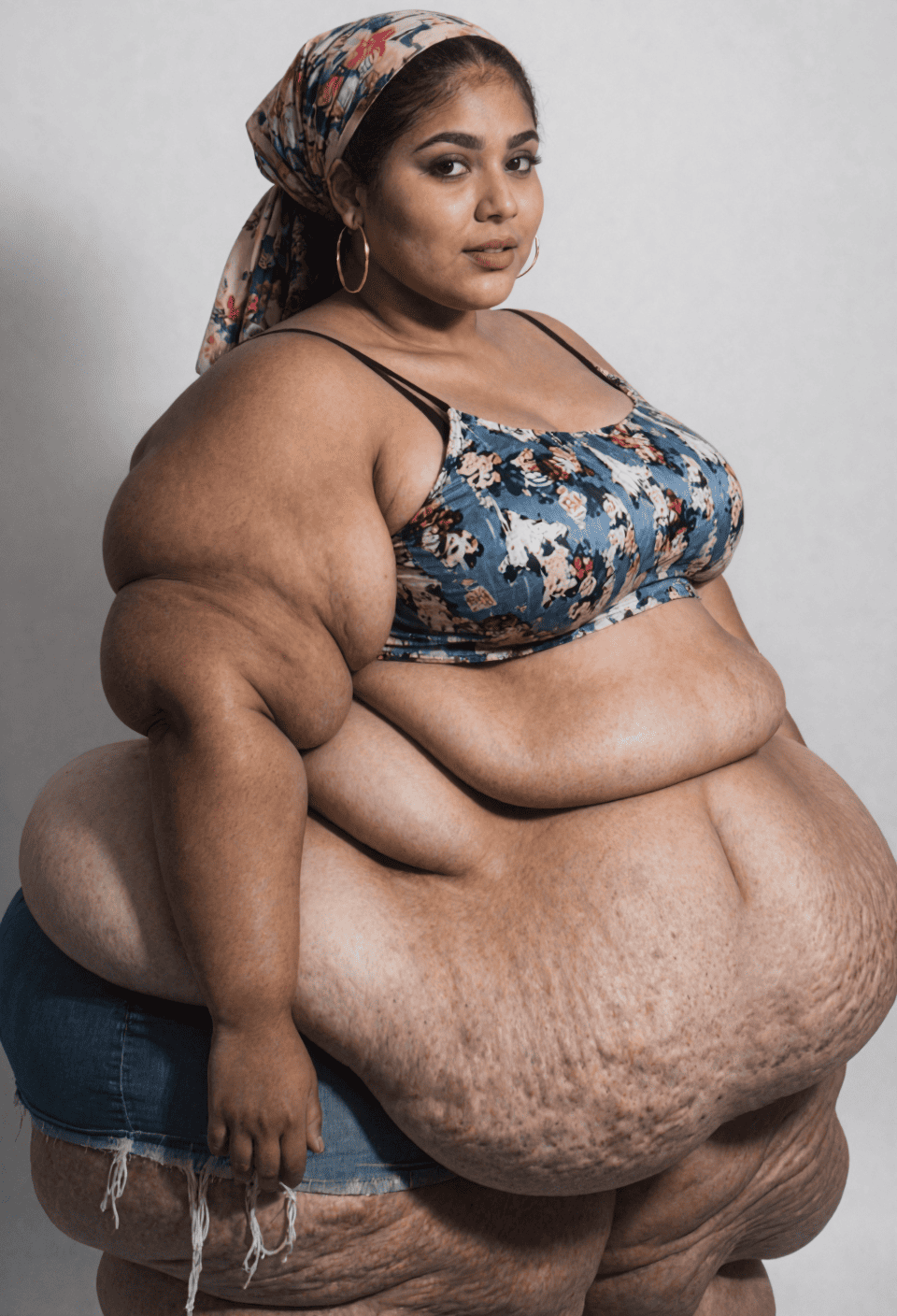 Extra tags: thick thighs, huge ass, wide hips, belly, fat biceps, chubby face, double chin