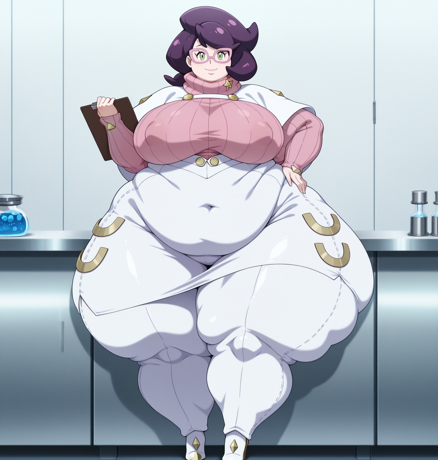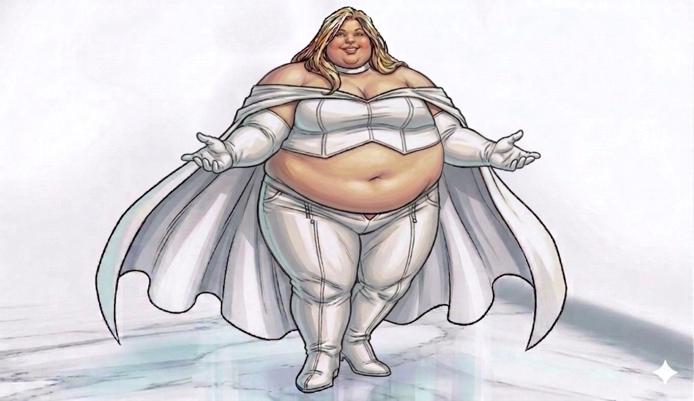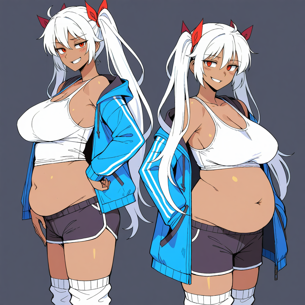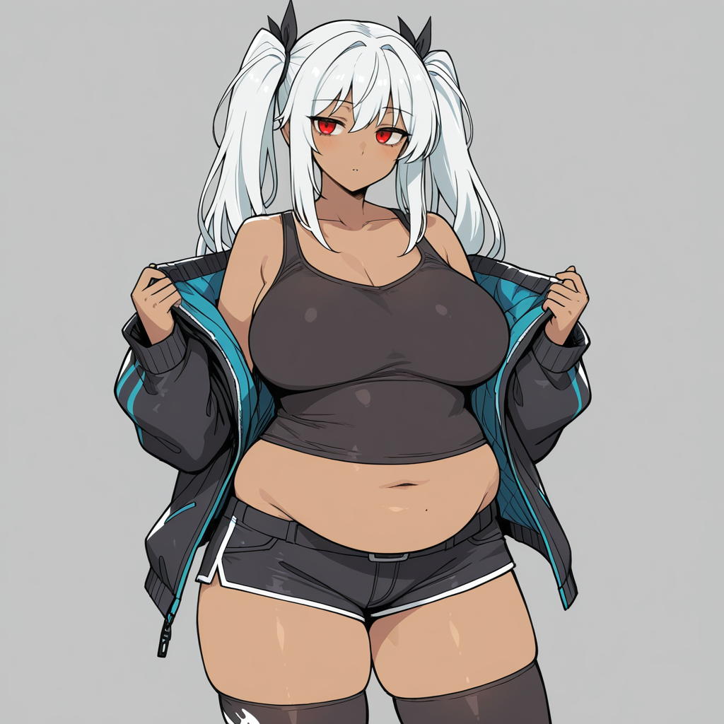 Extra tags: thick thighs, huge ass, wide hips, belly, fat biceps, chubby face, double chin