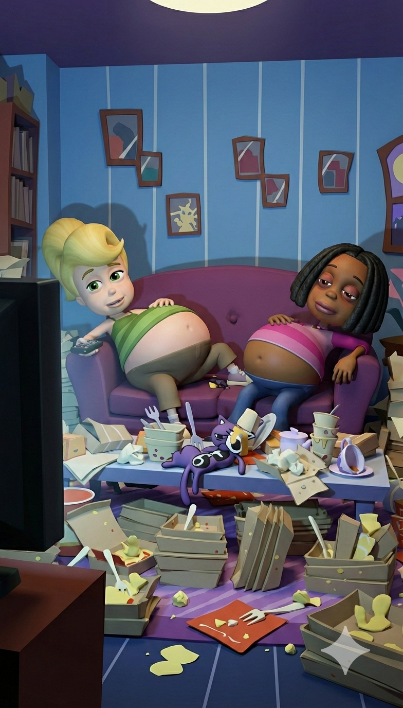 1) Have more than a single character, where one character is obese and the other interacts with them, but does not get obese as well;