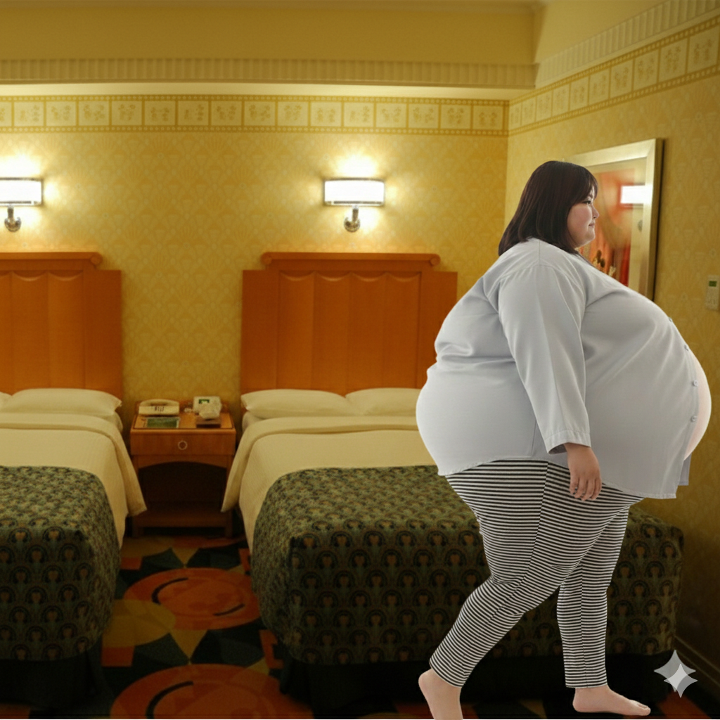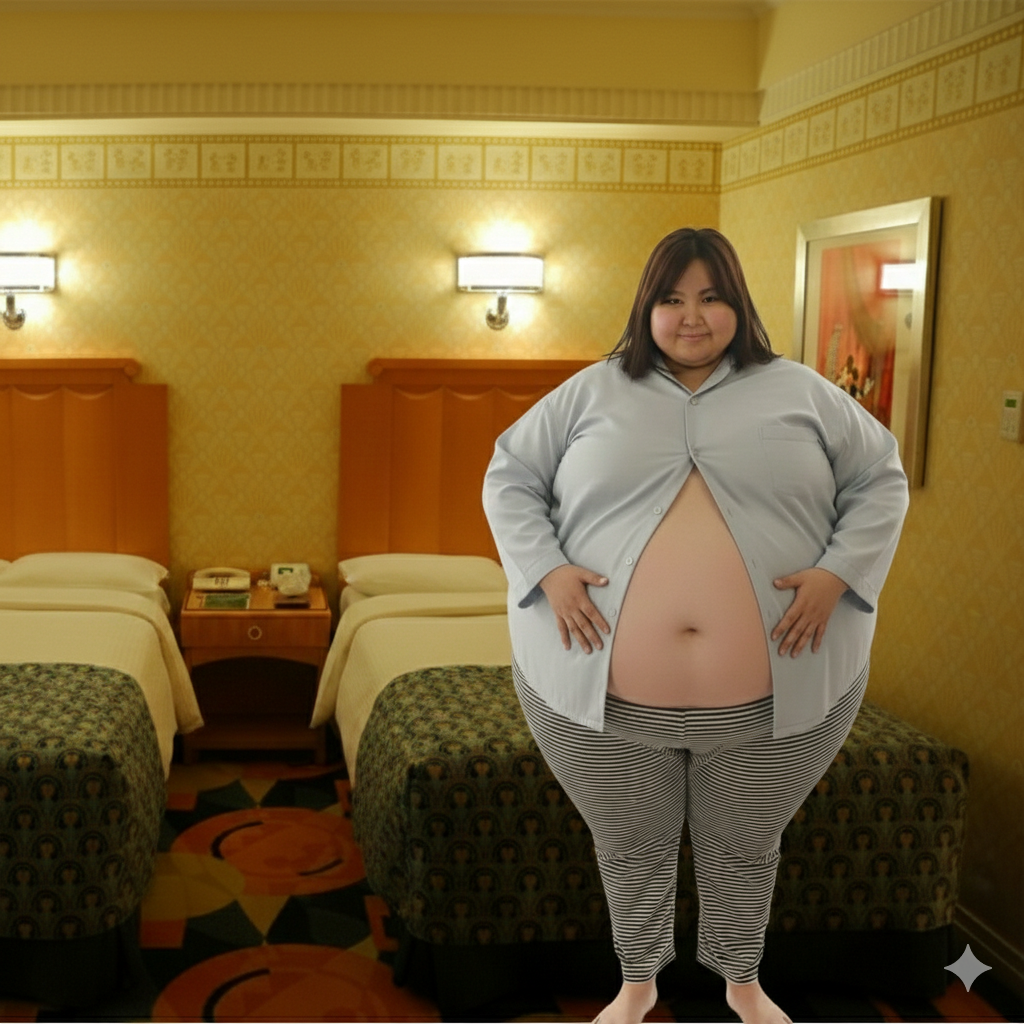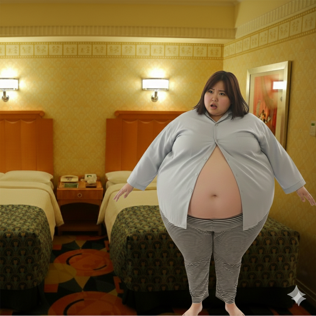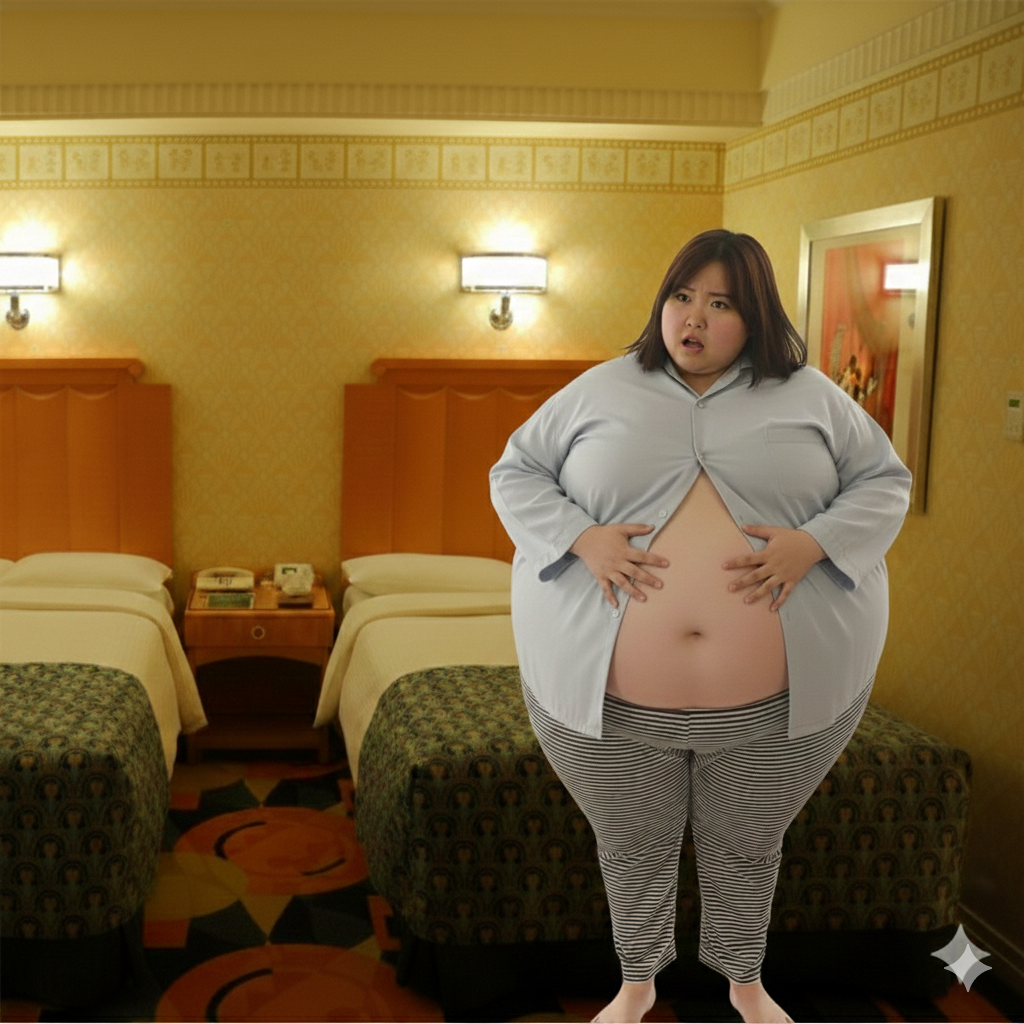 Japanese idol, model and founding member of Big Angel Ohashi Michiko buys a protein shake called "Bloaty Lady" that promises healthy weight gain, drinking it all at once, and bloats up to a massively obese size.