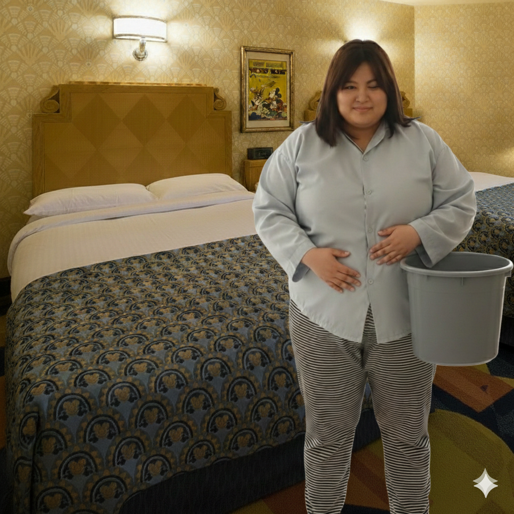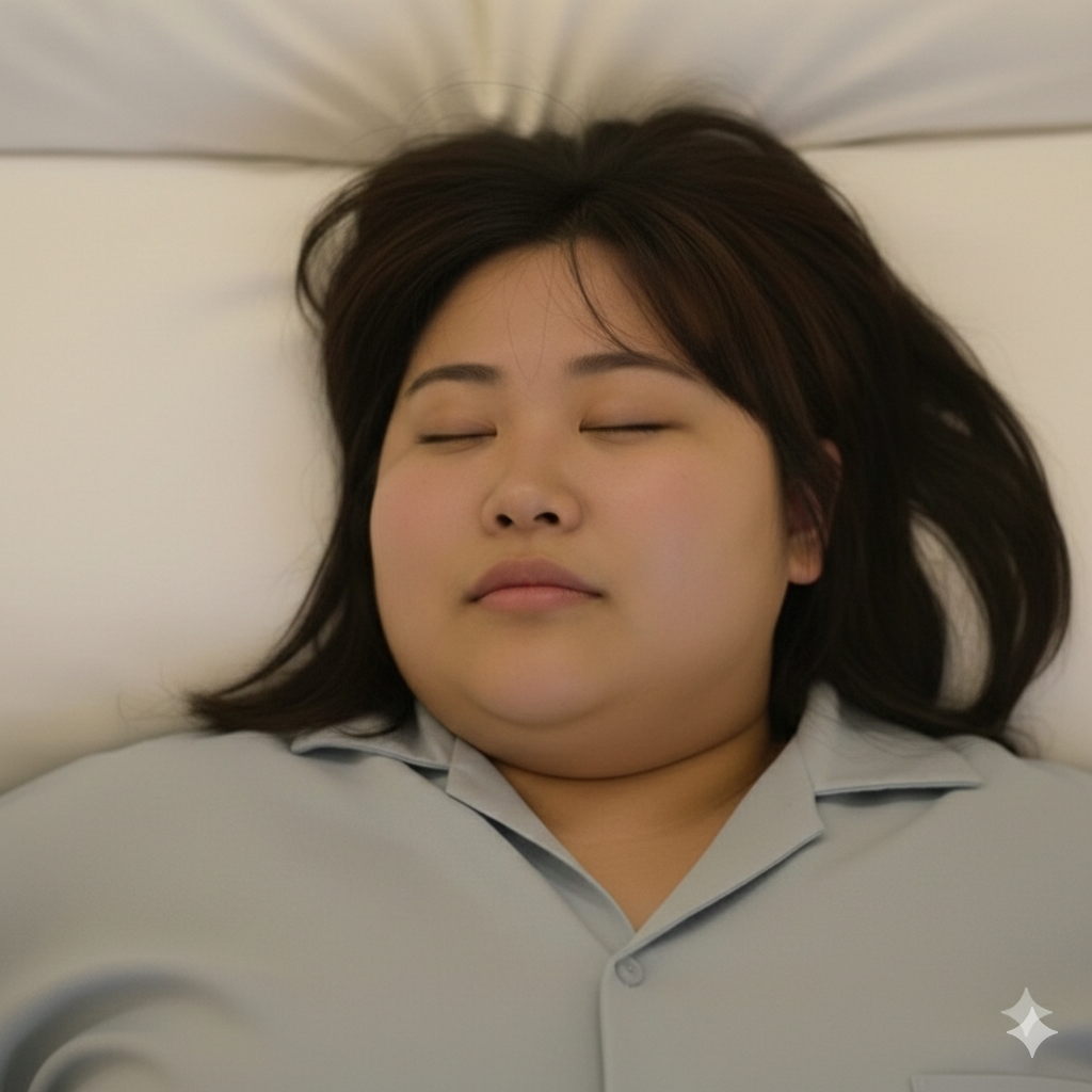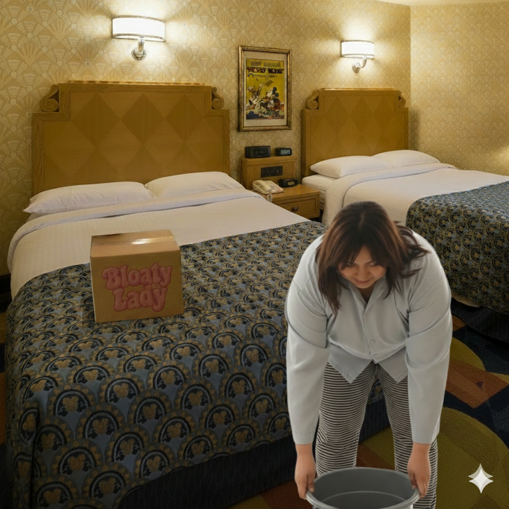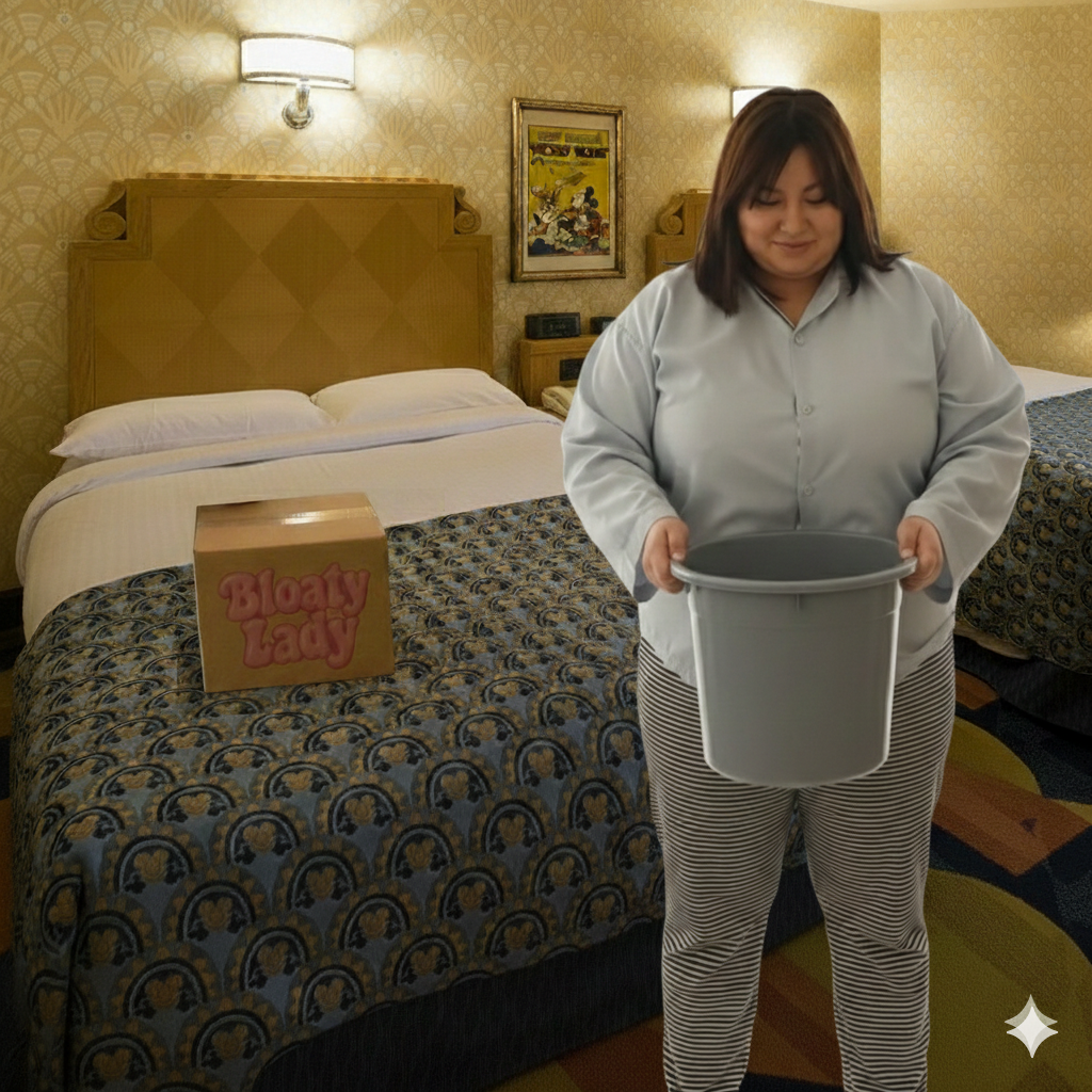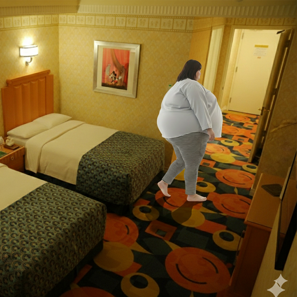 Japanese idol, model and founding member of Big Angel Ohashi Michiko buys a protein shake called "Bloaty Lady" that promises healthy weight gain, drinking it all at once, and bloats up to a massively obese size.