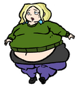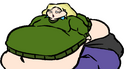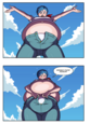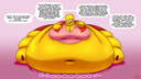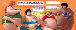 (Before you can react, you’re pushed back onto the couch. She’s still unbelievably strong—maybe even stronger. Your breath hitches as her full, curvy frame presses against you, her stomach gurgling softly from the motion.)
