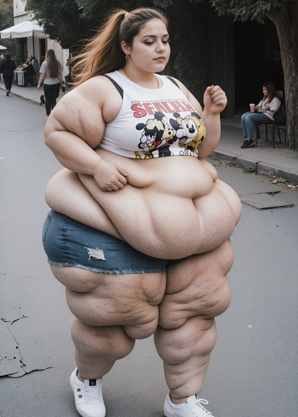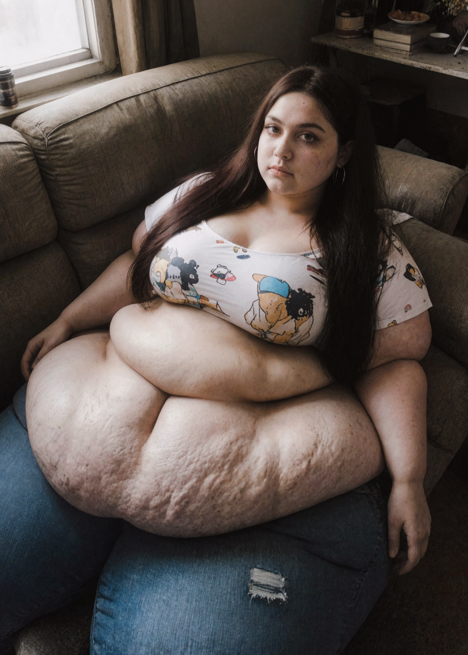 Anyway, since then, I've discovered a new facet of my fat fetish: weight gain with age. The idea of a thin, youthful, energetic woman growing older, heavier, and lethargic over time. The seedance algorithm is particularly handy for video transitions, and I've made these two clips so far, to try and capture what I find so sexy about this kind of transformation.