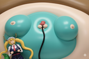 The material should appear like a real, plastic statue, perfectly capturing the original pose. The result must be a lineless photograph of this sculpture. Keep the saturation levels from the original image."