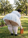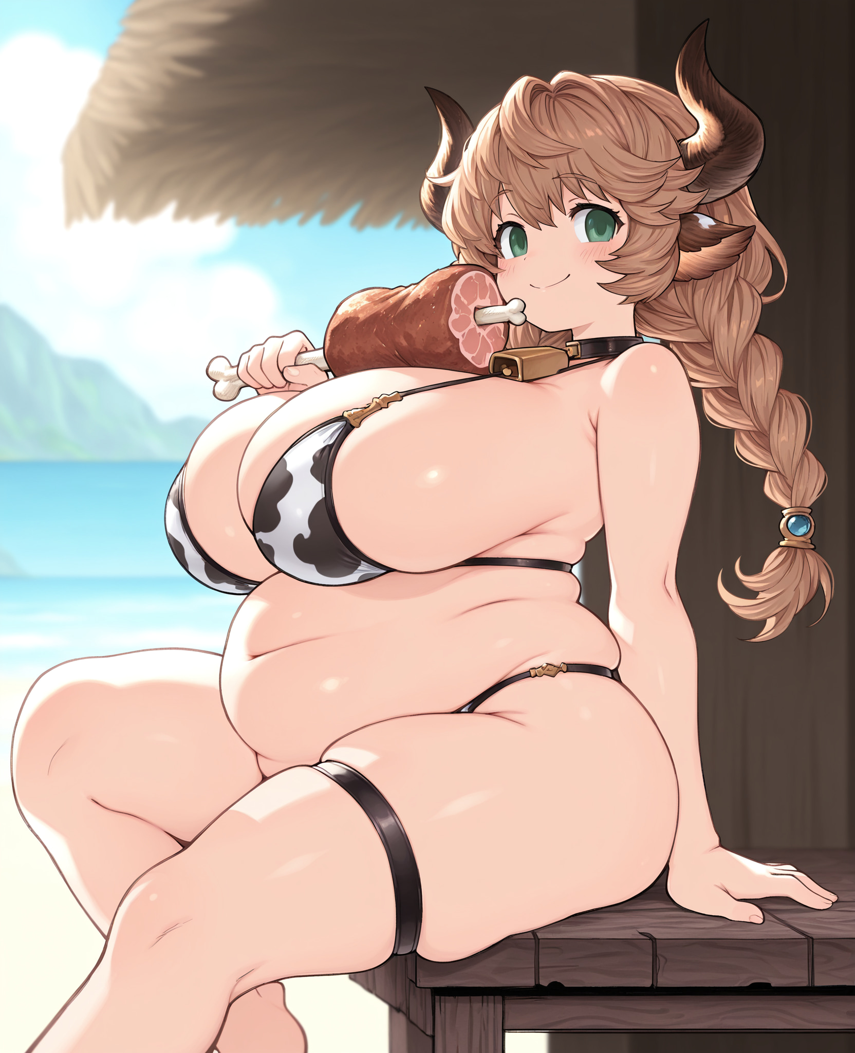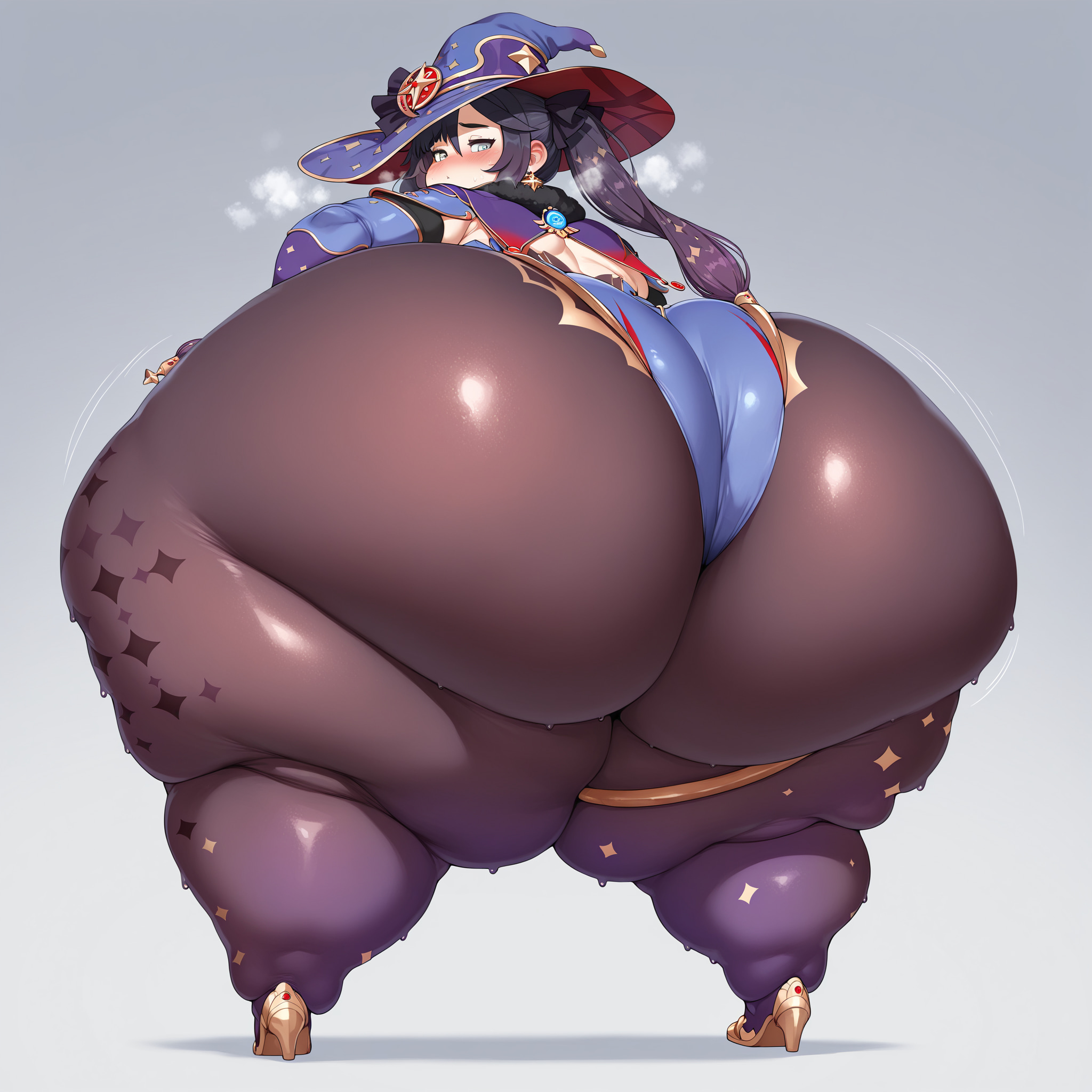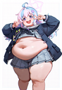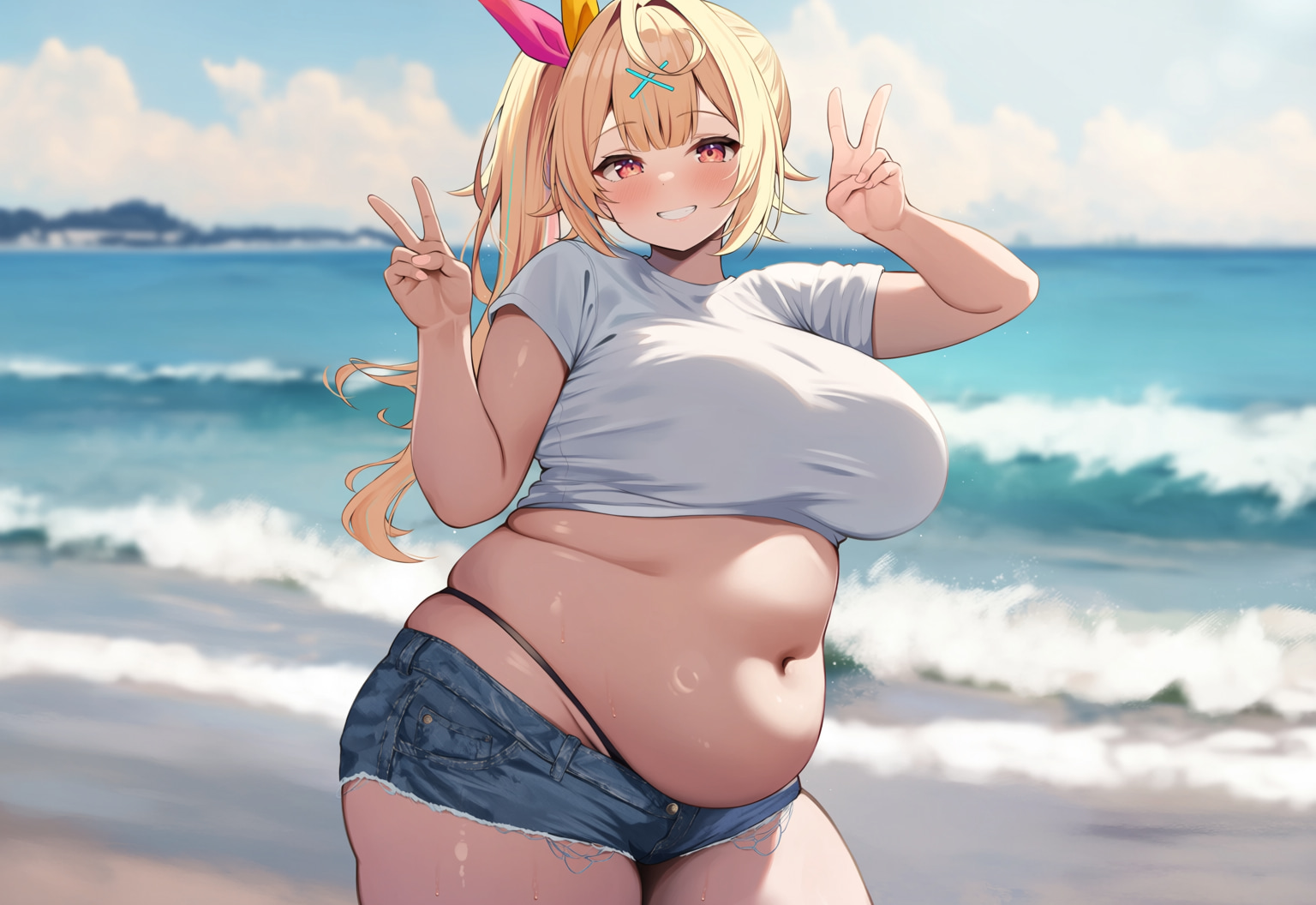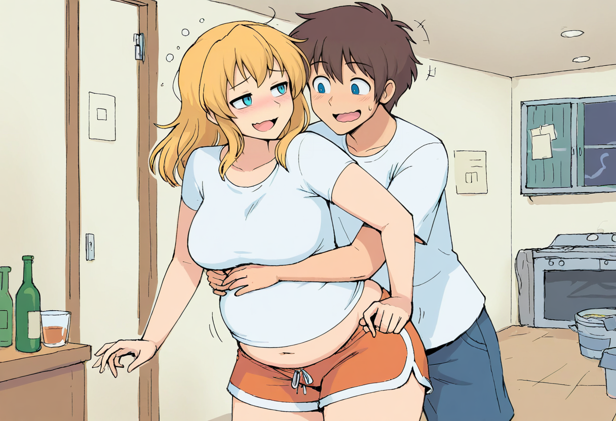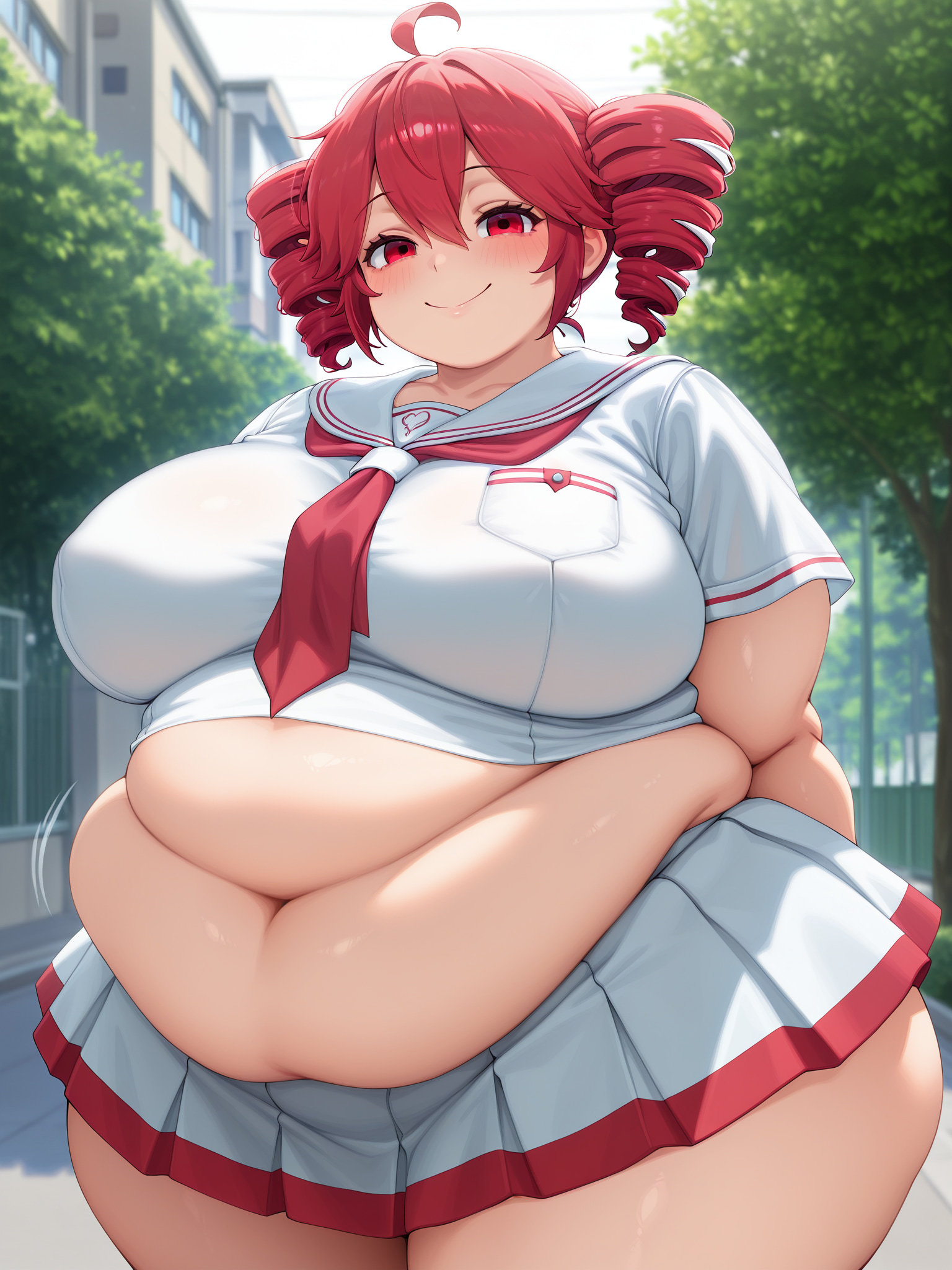 I used reference images of actual ssbbws that I had already face swapped (blue panties is party, pink bra is celia, images in my deviantart account youonlgetonebody and youonlygetonebody2) and used this prompt or something similar to it: "Create a high-resolution candid photo (captured by another person on their phone camera) of this same subject, taken as she stands in kitchen raiding he fridge for fattening snacks in a upscale upper middle class house . wide angle. Subject is mildly surprised to be photographed. The subject should appear to be the extremely fat and obese , extremely super-obese. Extreme overwhelming body fat interacts with the environment, squishes against things, spills onto things, etc. Body fat hangs loosely and is extremely voluminous and doughy.. Preserve the subject's extreme body type exactly. Pose is natural, playful, and imperfect; composition is asymmetrical.. Pose should be different from the input image. Her face is cute and beautiful and she is 45 years old.. she had a beautiful face that is relatively thin. Same outfit and exact same body size and shape. She is a formerly thin beautiful woman who now weighs over 600 pounds. She has an immensly fat disproportionately large low hanging belly that hangs between her legs. Her hips and.backside are monumentally fat and wide, her hips and backside are wider than a standard door. Show her massive hanging belly apron belly outline under her dress. Extreme ultra pear shaped body, massively wide hips and backside. Emphasis and focus of image on her extremely wide body. Her belly button is low on her belly. No hand in picture no phone..no other people in picture. Same body size and shake and outfit."