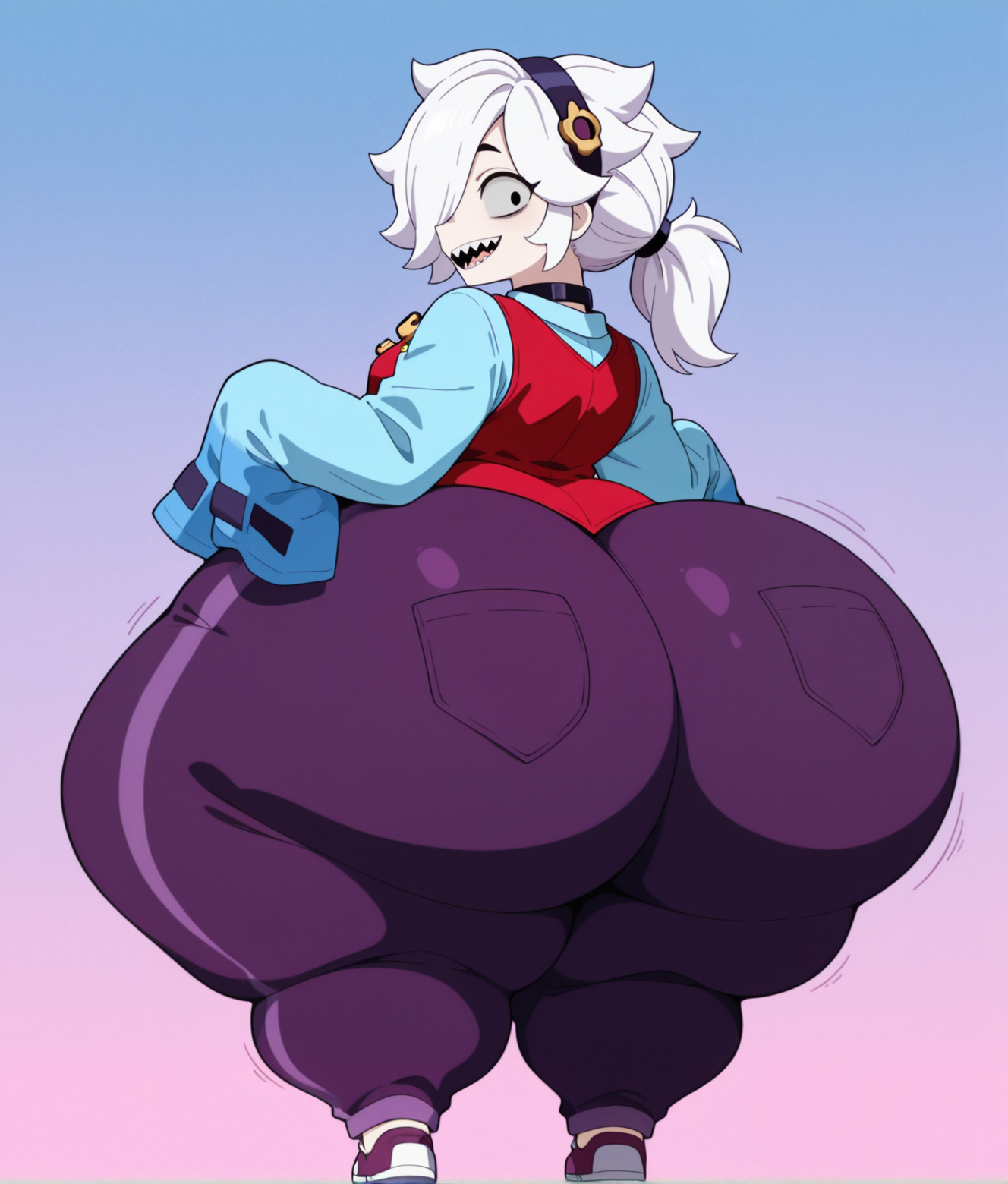 I'm requesting images of Colette from Brawl Stars with a big wide butt (at least 6 images are fine. If more are sent and provided in a folder, I'd really appreciate it). Keep her proportions normal, except for the butt (use image for shape and size reference), and keep the angle and expression the same as the provided image. Model link: https://pixai.art/es/model/1830772526295506350 Request anchor: >>36944