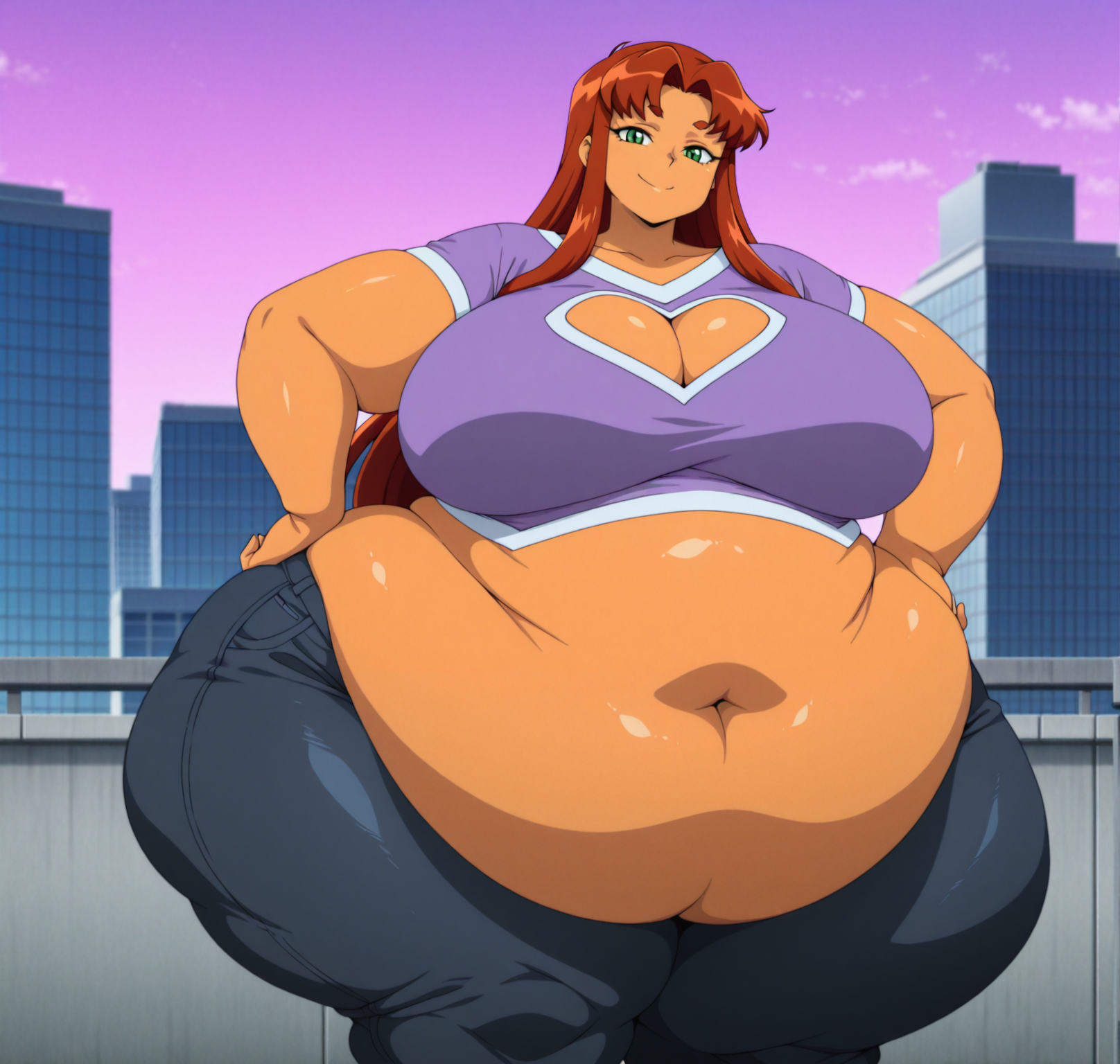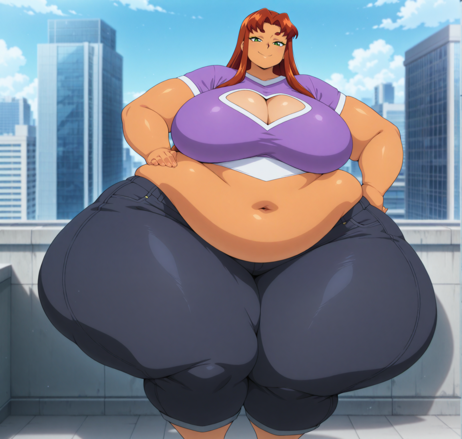Shantae. Sysmix: Not sure how many are there. Size: SSBBW Body Type: Bottom heavy Breast Size: big to large Scene: Random Poses: Random (Although, I'd love to see one with her looking seductively over her shoulder and placing her hands on her hips) Outfit: regular outfit Expression: Seductive Touch-up: Character lora Extra tags: thick thighs, huge ass, wide hips, belly, fat biceps, chubby face, double chin