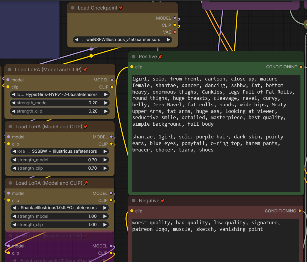 https://civitai.com/models/729838/shantae-shantae-series-pony-illustrious?modelVersionId=1227035 Body Type: Bottom heavy Breast Size: big to large Scene: Random Poses: Random Outfit: Regular outfit with a couple of bikini pics as well. Expression: Seductive Touch-up: Character lora Extra tags: thick thighs, huge ass, wide hips, belly, fat biceps, chubby face, double chin