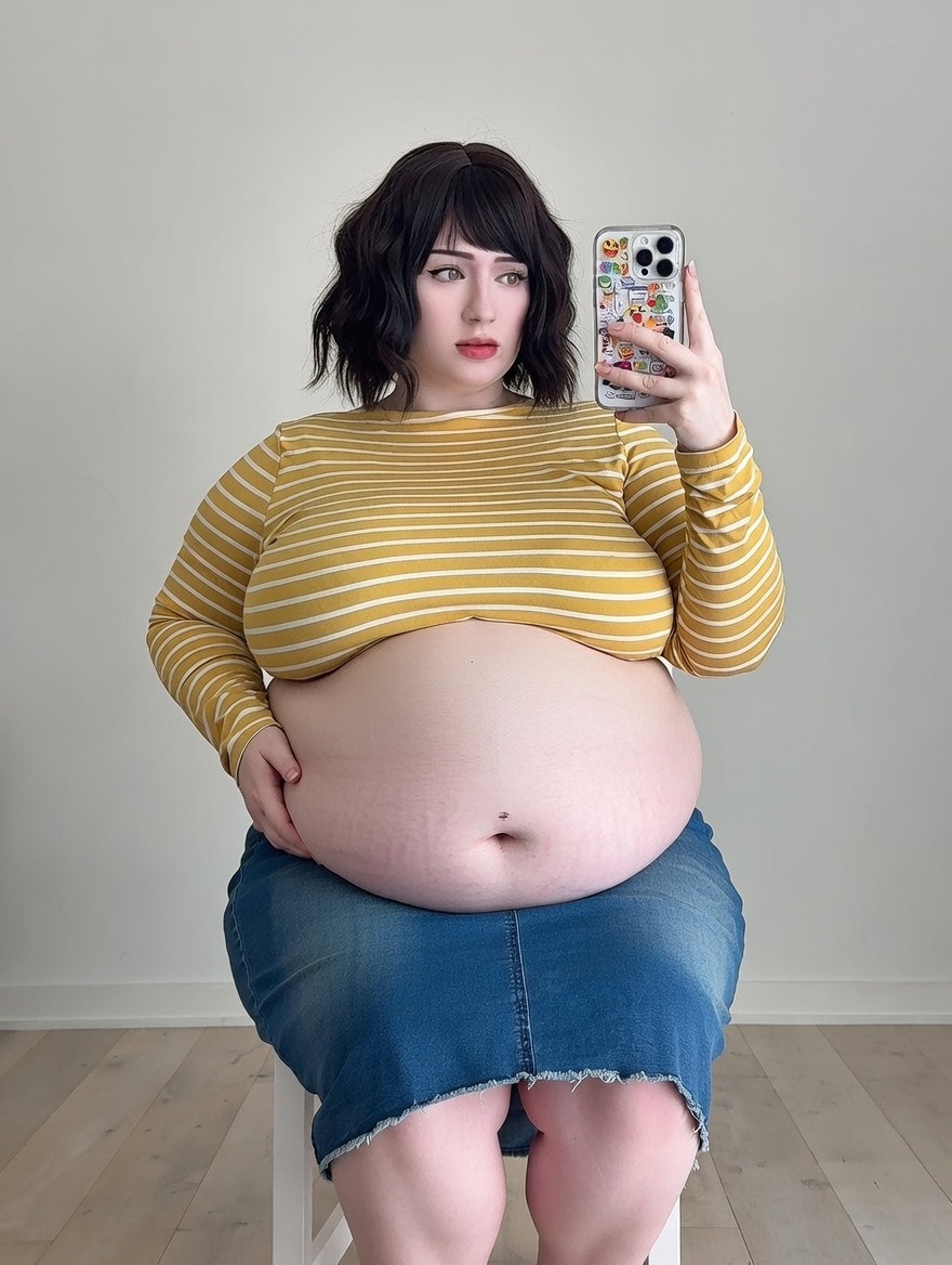 Can someone try making this picture fat? I tried a couple of different prompts, but almost all of the ones I generated removed her belly button for some reason.