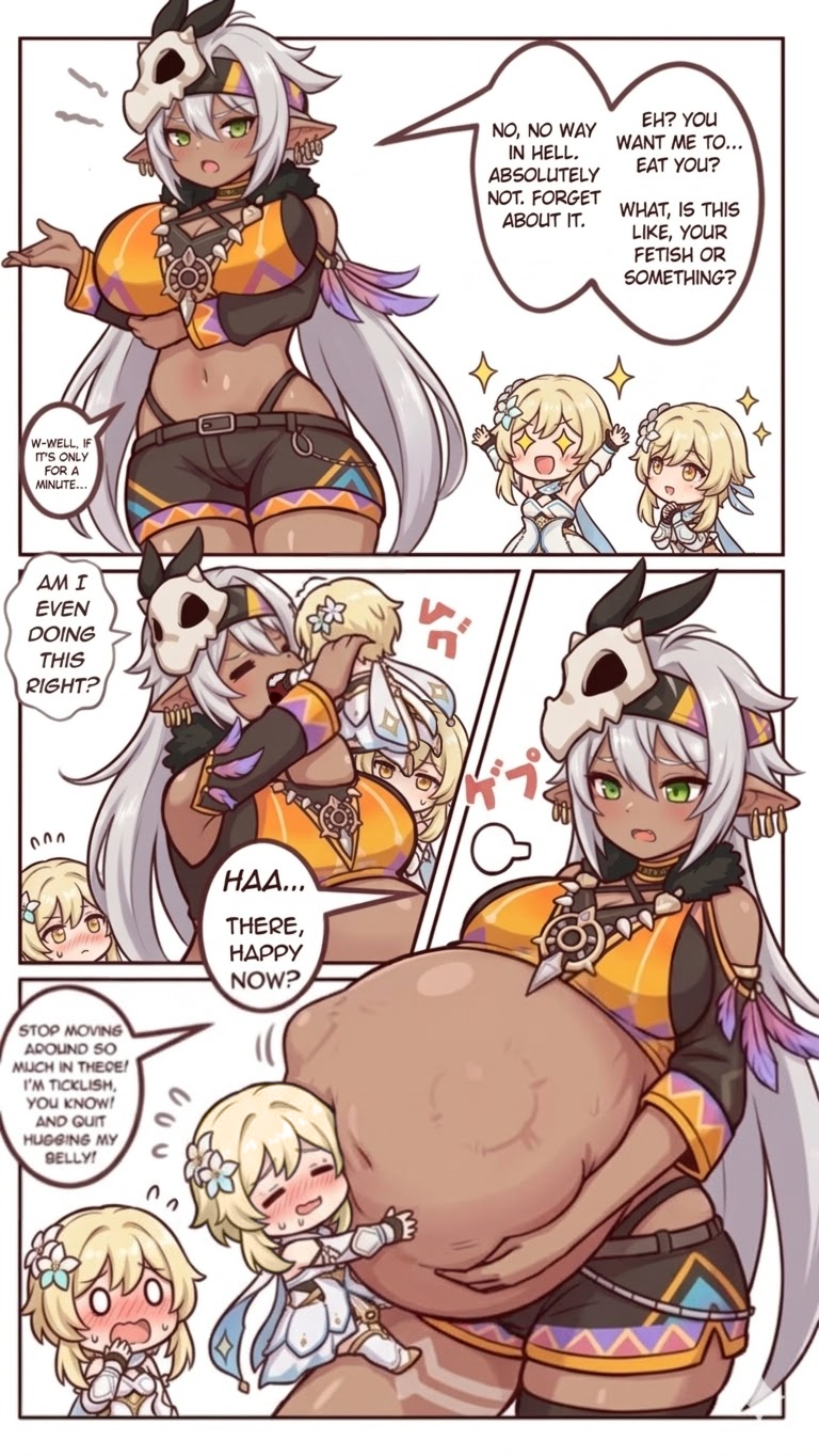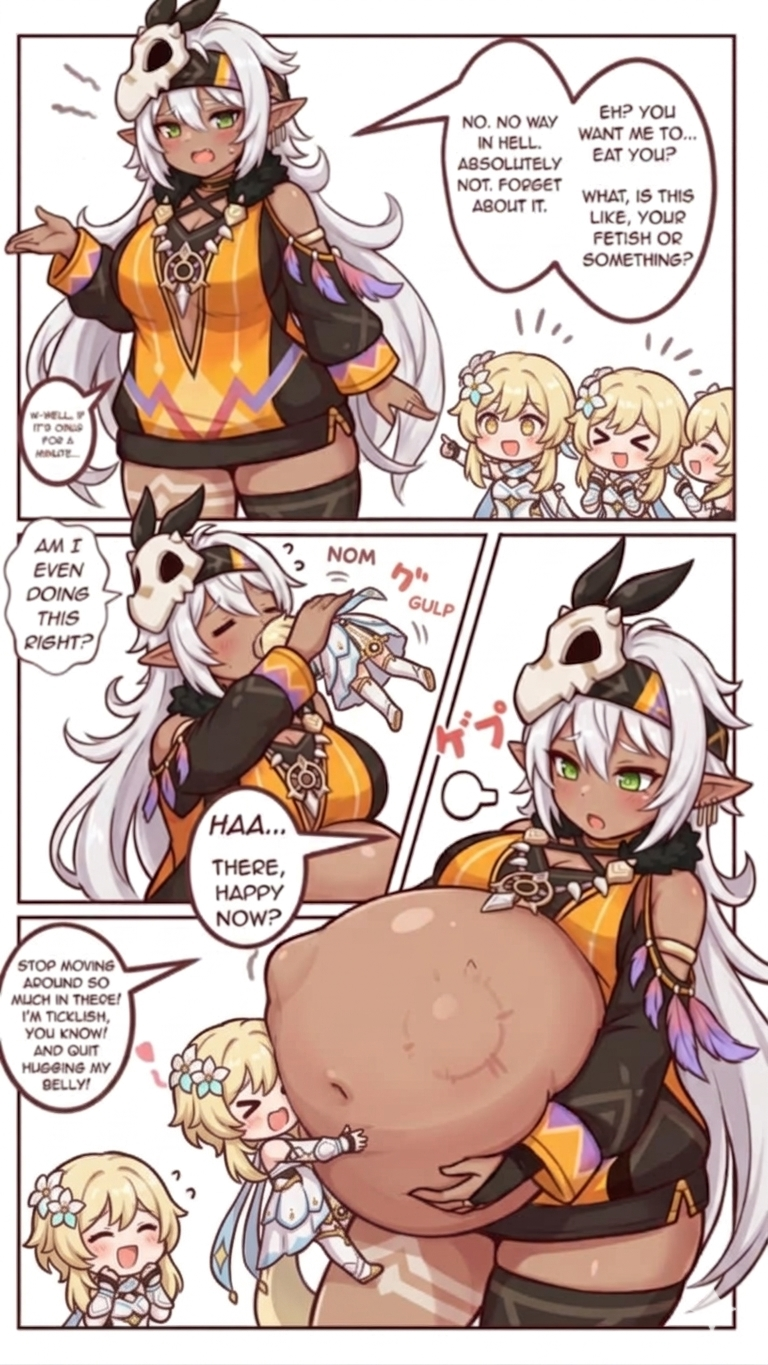 I make primarily vore art that leads into weight gain using different styles and editing it by hand after the fact if anyone is interested :p https://www.deviantart.com/the-heavy-cream