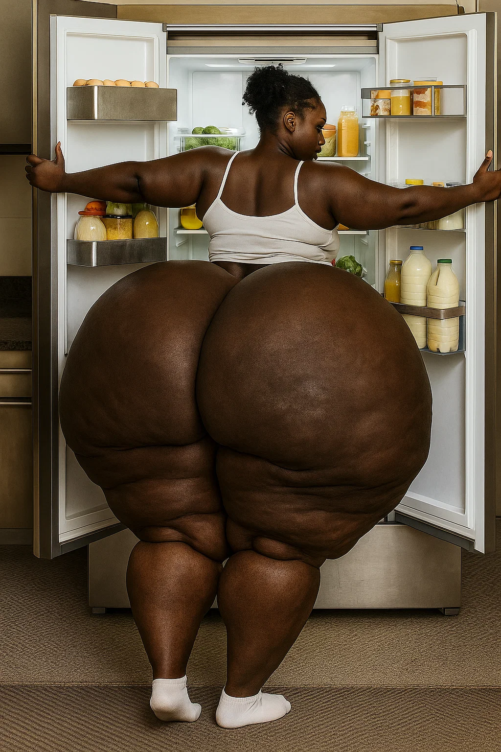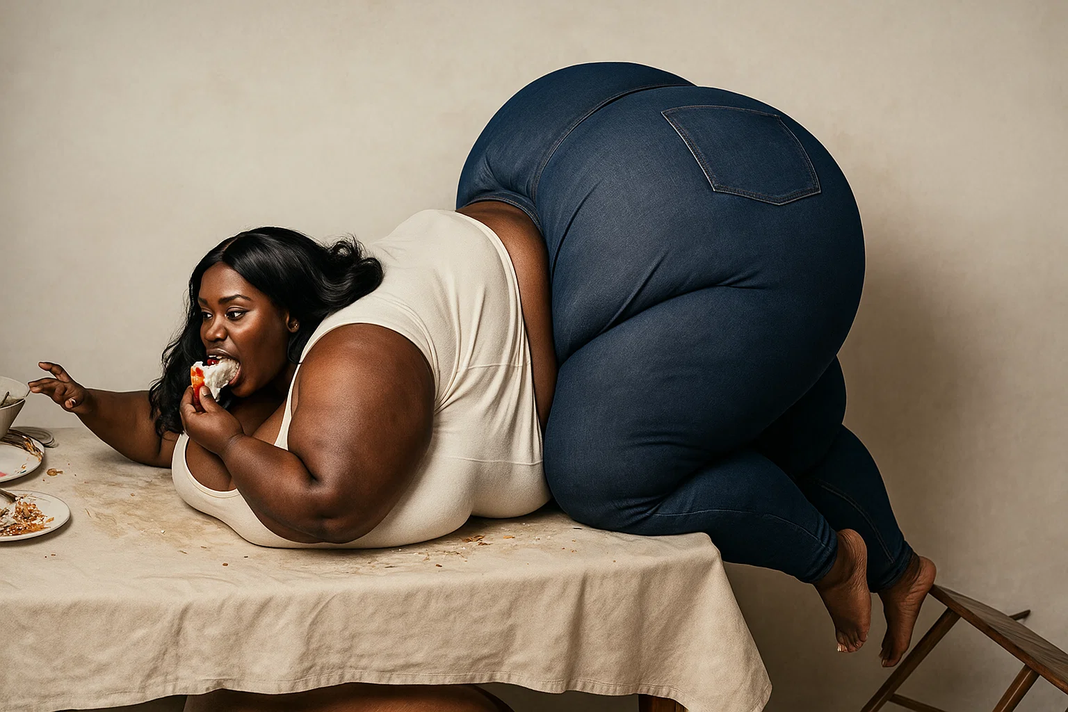 <style>, 1girl, solo, asian, pale skin, pretty face, chubby, curvy, looking at viewer, all fours, from the front, crawling, inside military facility, stuck, ass squeezed inside small opening, (fat hips stuck), struggling, straining, exerting, grunting, (huge ass, wide hips, fat hips, hyper ass, ass expansion, fat ass:1.2) spy jumpsuit outfit, ripped clothes, thick thighs, action shot