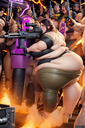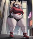 Guy who originally made the thread here, even if the ID system doesn't say as much thanks to swapping VPN providers and quite a bit of time passing; I went back and spent an entire night of migraine medicine-induced insomnia dicking around with the site and genning a ridiculous amount of fatties, specifically using only the Hyperfusion v9 model for drawn ones since I don't much like the photo models still, and I made some interesting discoveries I'd like to share with anyone here who might be interested. Namely, I discovered that despite the fact that 99% of the top posts on the site using Hyperfusion all seem to use "c.cu" and "blushyspicy" as the artist tags for vaguely anime-style art, this thing can and will replicate more western/cartoon style artists like woot's just fine as well (images 1 and 4). More notably, it was able to replicate some less-well-known fat artists when I tagged them as well, such as the thick lined style of joekie3wl in the second image, and actually producing a full-on 3D style render to replicate ShubiJubi's stuff in the third image which surprised the hell out of me, as I expected it to just get confused and spit out something more generic in 2D like it did with other artists I plugged in that it didn't have enough or any data on. And to the credit of the people actually working on this thing, it took me quite a bit to actually find artists obscure enough to throw it off, I was literally plugging in random names off twitter and deviantart whose styles I found appealing mixed with scenarios I liked and seeing how they turned out, very rarely did it fail to actually translate the style properly. For an example of good shit it did that I personally like a lot, check image #5 that uses mentalcrash's artstyle, no points for guessing what the OC donut steel character was vaguely inspired by. Continuing my rambling shit in a second post because I need to add more images as examples to go with what I'm going on about, there's a (hopefully) good reason for it so please just roll with it I guess