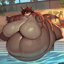 https://stuffer.ai Been giving this a shot both a few weeks ago and over the past couple of days, and it's gotten much better at producing AI fats than it used to be. Still outclassed by custom colab/local SD models using the newest BiggerGirls models, but for a free web implementation without registration and with a fast image gen pace, it's pretty decent. As a bonus, you don't have to spend eons dancing around arbitrary word filters like you do with the censorship hell bing's dall-e implementation has sunken into. To start us off, here's some good results I got with various permutations of these two prompts: >bottom-heavy SSBBW trapped in a narrow doorway, huge ass, huge hips, huge thighs, pear-shaped, sweaty, aroused, irritated >sketch, princess daisy [insert scene/action here], huge belly, bloated belly, swollen belly, sweaty, aroused, blushing, belly noises