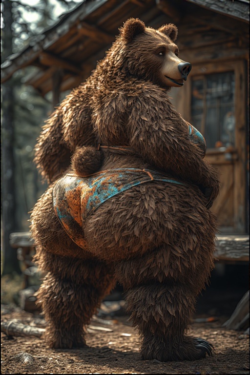 Big fat female anthro grizzly bear, huge fat ass, realistic