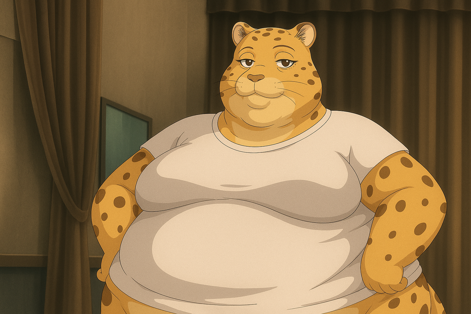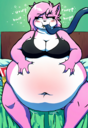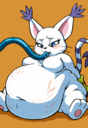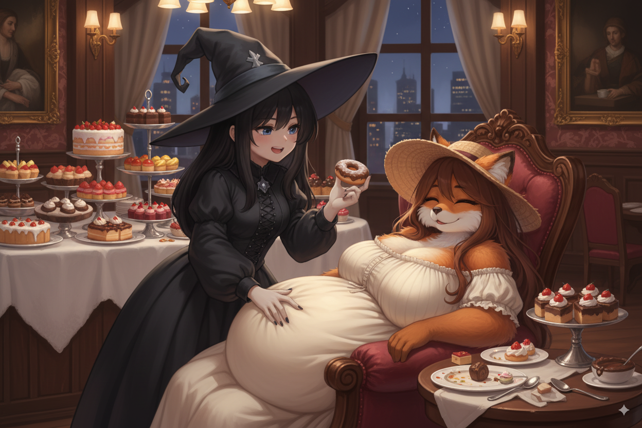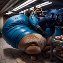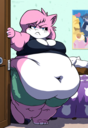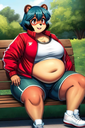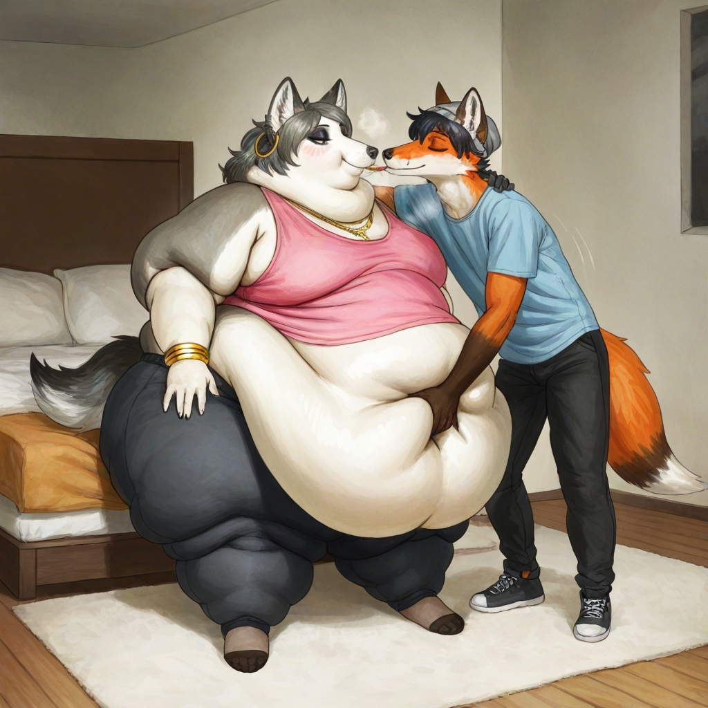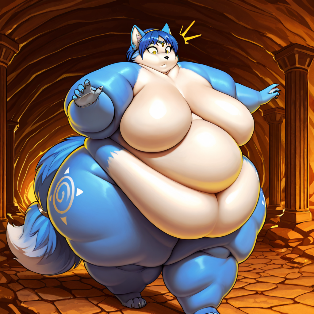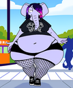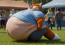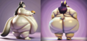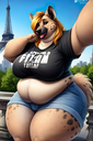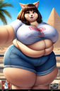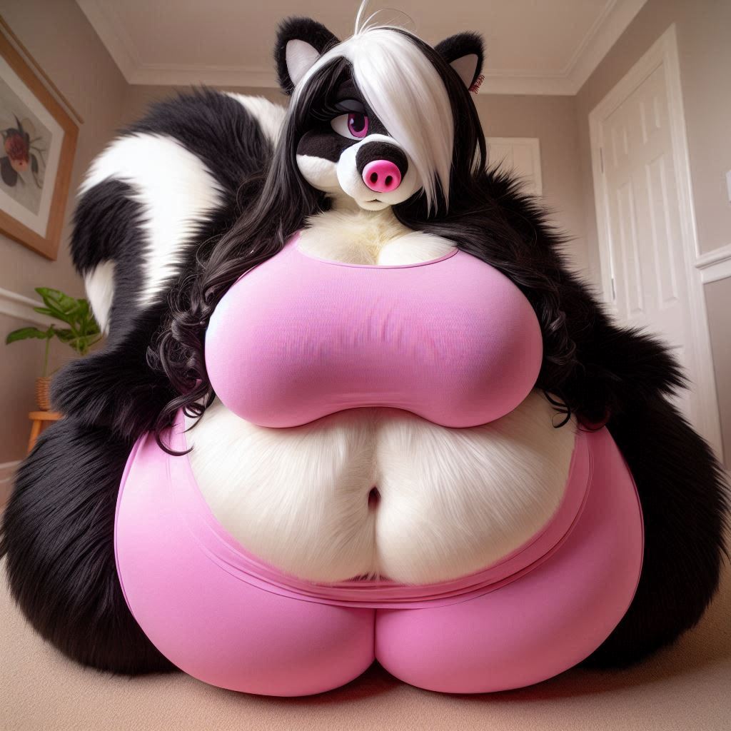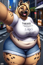 >>35825 The prompt in ImageFX was this: highly detailed CGI render depicting a hyper obese short sassy 500lbs stylized emo anthro leopardgecko slob leaning backwards with her massive round blubbery middle dragging on the ground, extremely bloated, fully clothed wearing muumuu, sweaty baggy black tshirt with "FOOD BLIMP" printed on it, monstrously obese cheeks, her monstrously obese double chin is squished against her chest, monstrously obese groin fupa dragging on the ground between her short legs, extremely obese short arms out to her sides, fat smothering her face, acne, she is at a public country fair, grassy ground, sunshine, winged eyeliner, pretty eyes, dark purple messy emo hair with messy ponytail, side view, candid shot. there are a few anthro characters in the background, The prompt in Pixverse was: The obese subject waddles forward, the subjects fat jiggles with every movement