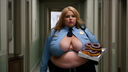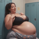 Is there a way someoone could make a girl from slim in a gym locker room getting so fast and her belly get rounder so its even pop her breasts or the underpants are ripping out?