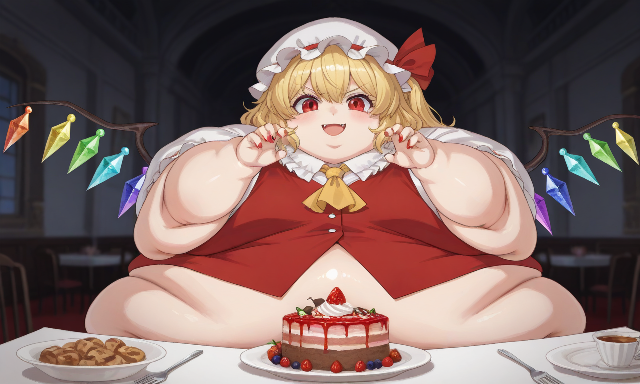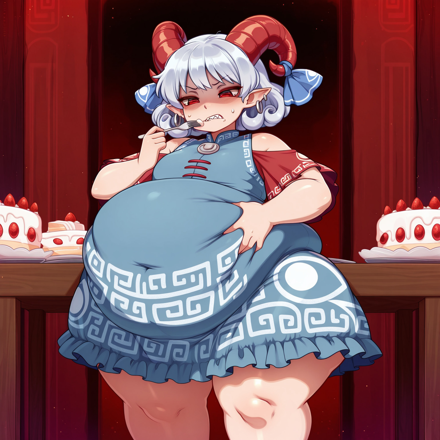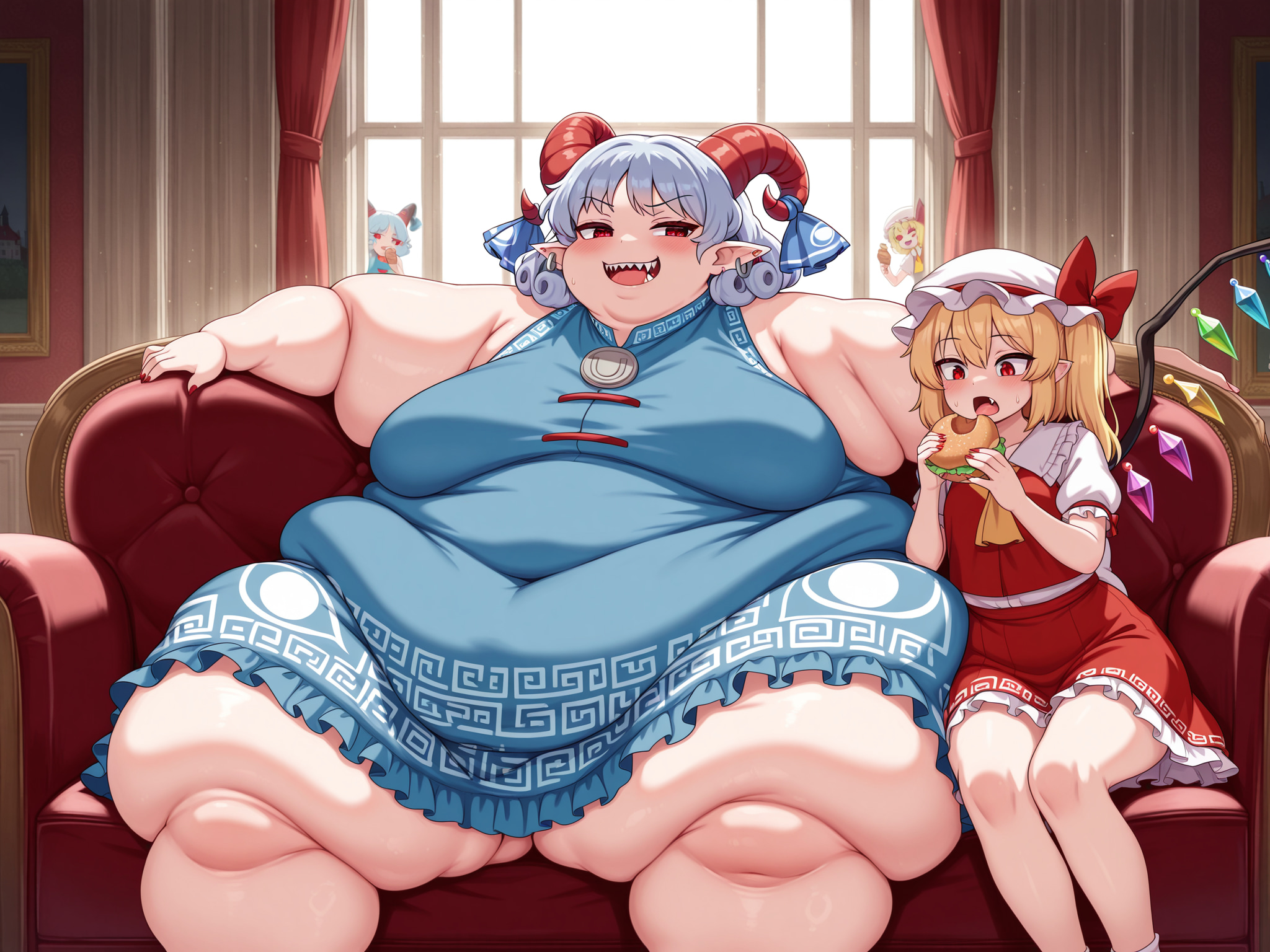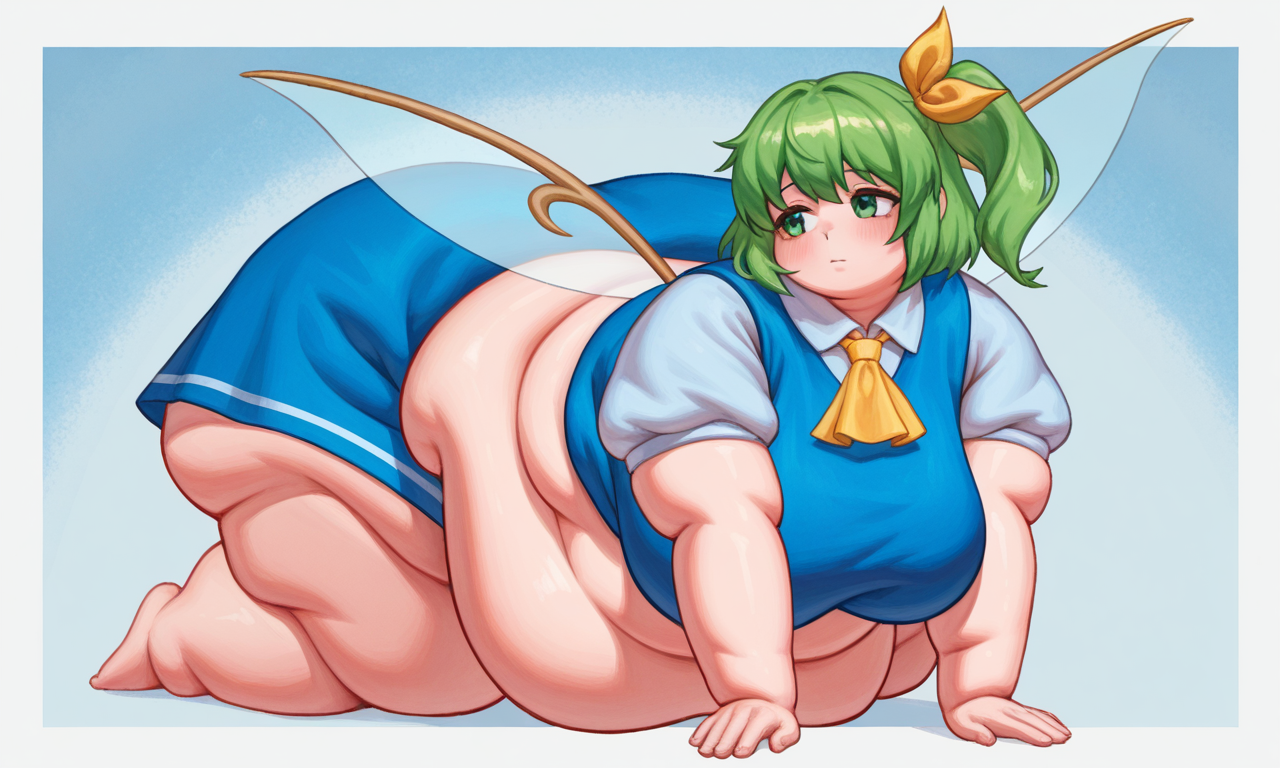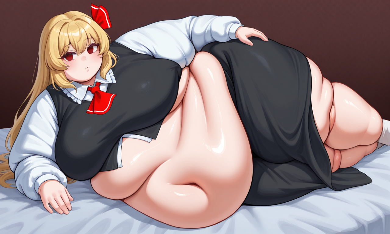Oh hey didn't expect this thread. I'm a lot more familiar with the chatbot generation over images though, but if anyone happened to be up for fielding requests... I don't think I've seen fat art of osana-reimu/ex Rumia before so a fat gen of the long hair adult Rumia would be cool.