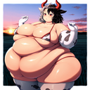 >>35278 model: WAI-NSFW-illustrious-SDXL workflow: basically this with minor modifications https://comfyanonymous.github.io/ComfyUI_examples/2_pass_txt2img/ (the first one) Inpainting would be a separate workflow, which I basically never do. lora: you can get good chubby or fat (not obese) girls out of the box, as well as many artist styles. for anything else try https://civitai.com/models/645787/hyper-girls or symix https://bbw-chan.link/bbwai/res/23982.html#34472 or simply go to civitai and explore the fewer loras the better and also don't necessarily use them at 1.0 strength prompt engineering is probably the most important part: you should make yourself familiar with how danbooru uses tags to describe poses, image composition, body types, actions and such. I don't use free-form textual descriptions at all. Keep the prompt simple and structured. Follow the advice given with the checkpoint and don't copy-paste those huge pre-made positive/negative prompts you see elsewhere. I'll attach an example. other than that just try out different things and see what changes. you can set the seed to a fixed value and play with the prompt to see what effect a certain keyword/lora actually has. this is more fun if you have decent hardware, for example this pic took me 20s to generate.