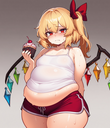>>37045 Remi, for all her posturing, still can't bring herself to glut like Flan can or be as 'forward' as her little sister. Flandre, on the other hand, is going to gorge till she can't move from the meal just so she can get you to bring her to the bedroom where that second meal beings. >"Immobility? It would be a nice change of pace~, eternal life does get rather boring if you don't spice it up."
