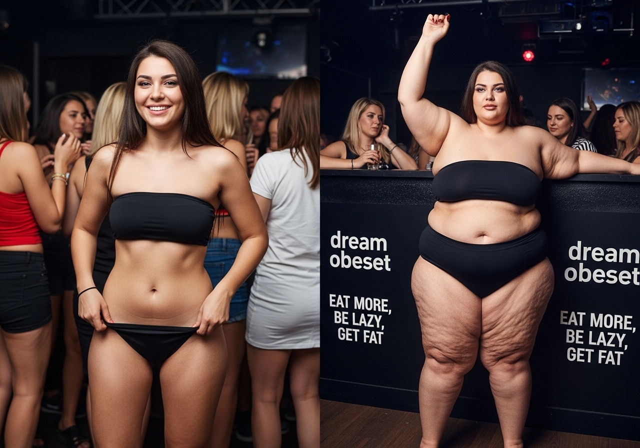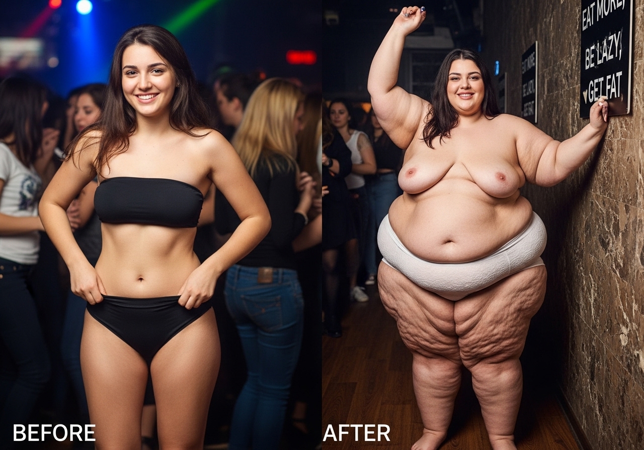 >>36798 You're not wrong - it's not so bad once you play around with it. This could be tweaked, but it generally worked well. 4k comparison, before after full body photos of huge weight gain in 1 year of brunette uk university student. in both pictures she mantains same description, she wears alternative makeup, eyeliner wing, long eyelashes, dark-haired brunette stunning long hair, a tiny star tattoo on her chest has lost quality over time. She is in her neon gamer bedroom. In the before picture she is slender, wearing a bikini she poses and points her two index fingers into one another pining longingly for food. In the after picture, she's in the same small bikini top. She is incredibly obese. Her face is the same beauty, but is now and obese face with a deep double chin. She has the same hair. she has expanded into a gigantically wide mountain of fat spill outward in all directions folding over. Her skin has large stretch marks. Her upper arm farm is rolling over her forearms, with multiple rolls and creases at the elbow. Her fupa is plush and pudgy. Her thighs are marks with cellulite; lard rolling over her knees which are hidden under fat. Her calves are round and large. Her ankles are round, and split in two by a large fat roll. Her hands and feet are fat, with round plump digits. She is impossibly obese, she is rapidly growing fatter, she is beyond the fattest woman in the universe, magic weight gain has caused her to grow to impossible fatness, every limb is extremely fat, humongous legs, neck fat hump, she poses.